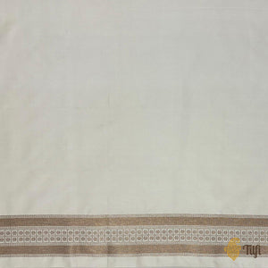 Woven in a gentle pastel pink with an antique zari finish, this plain-bodied saree whispers quiet elegance and grace. A contrasting Kadiyal border frames the drape, featuring intricate floral bootas set in measured geometry. A woven expression of Banaras’s refined and understated sophistication.