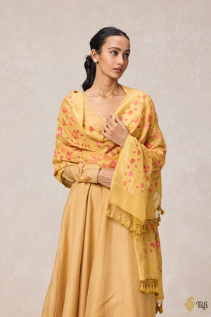 Speciality - A delicate floral pattern hand-woven along the body of the dupatta with exquisite multicolour meenakari. Absolutely delightful!