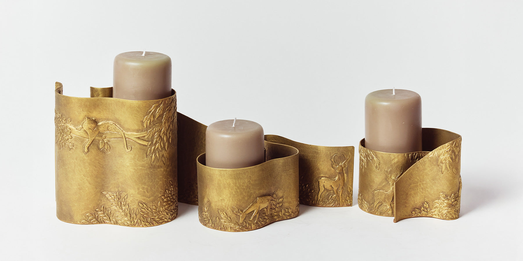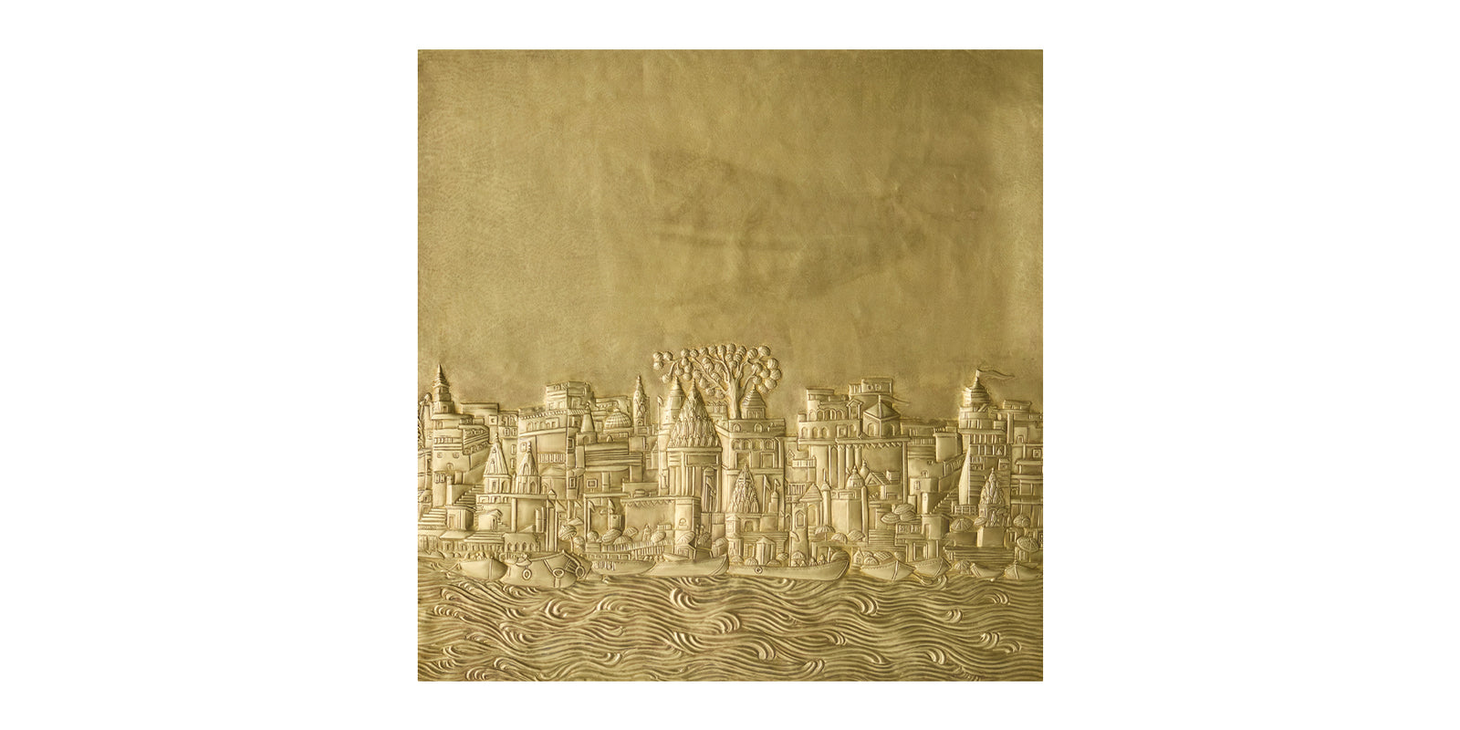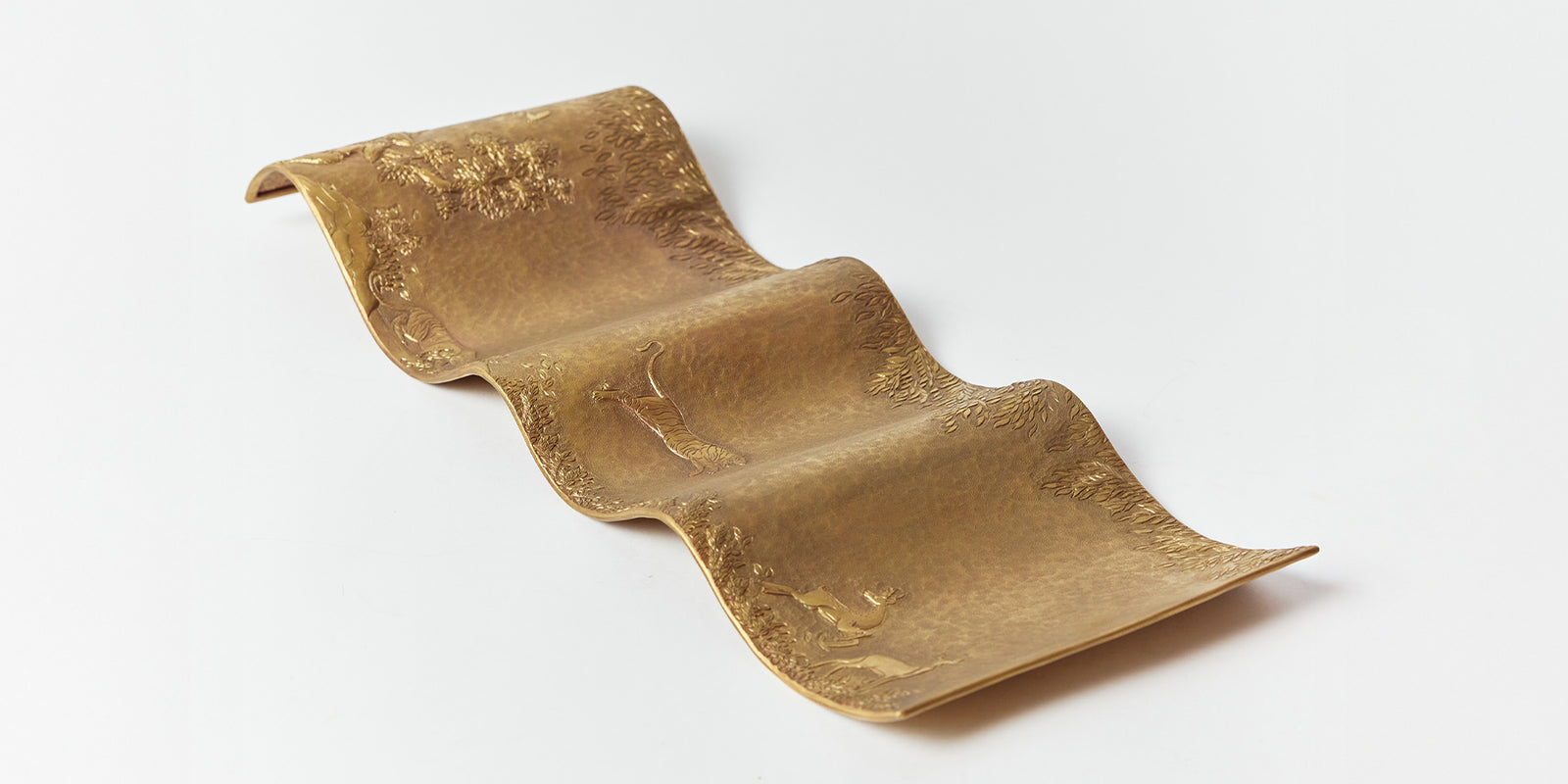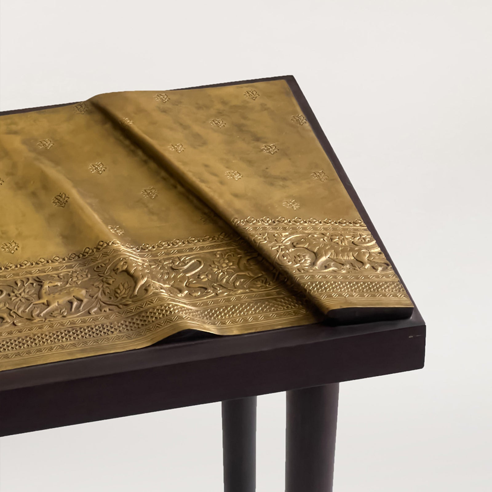 An ode to Banaras in both form and philosophy, the repoussé artworks created in Tilfi’s workshops challenge the very nature of metal. Drawing from the rich heritage of Banarasi looms, metal seems to bend, fold, and ripple in ways traditionally reserved for textiles.
