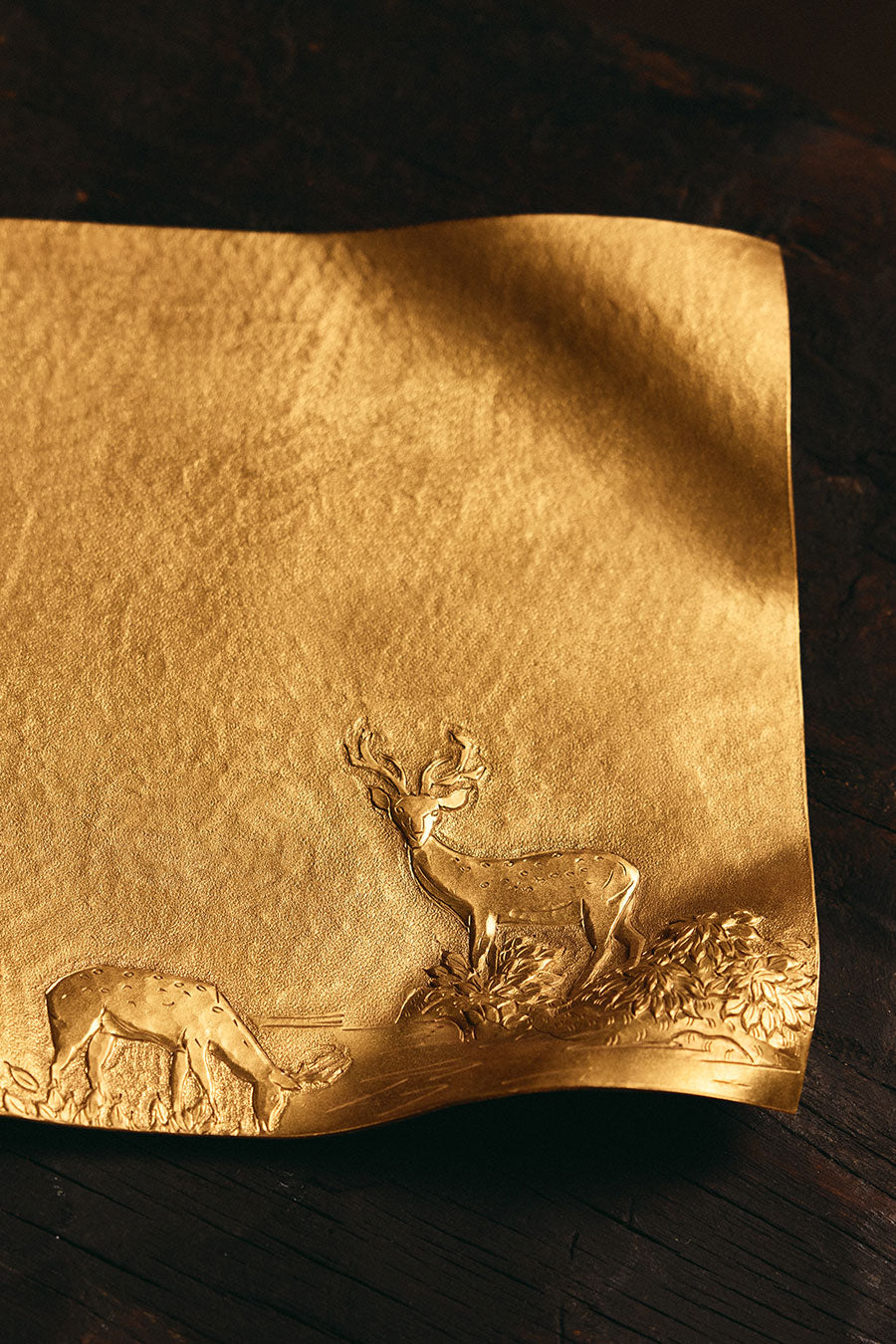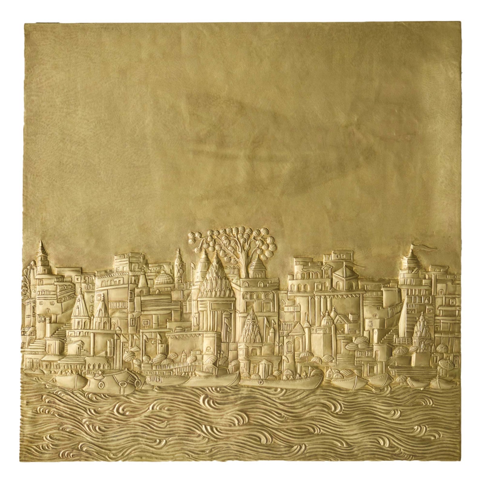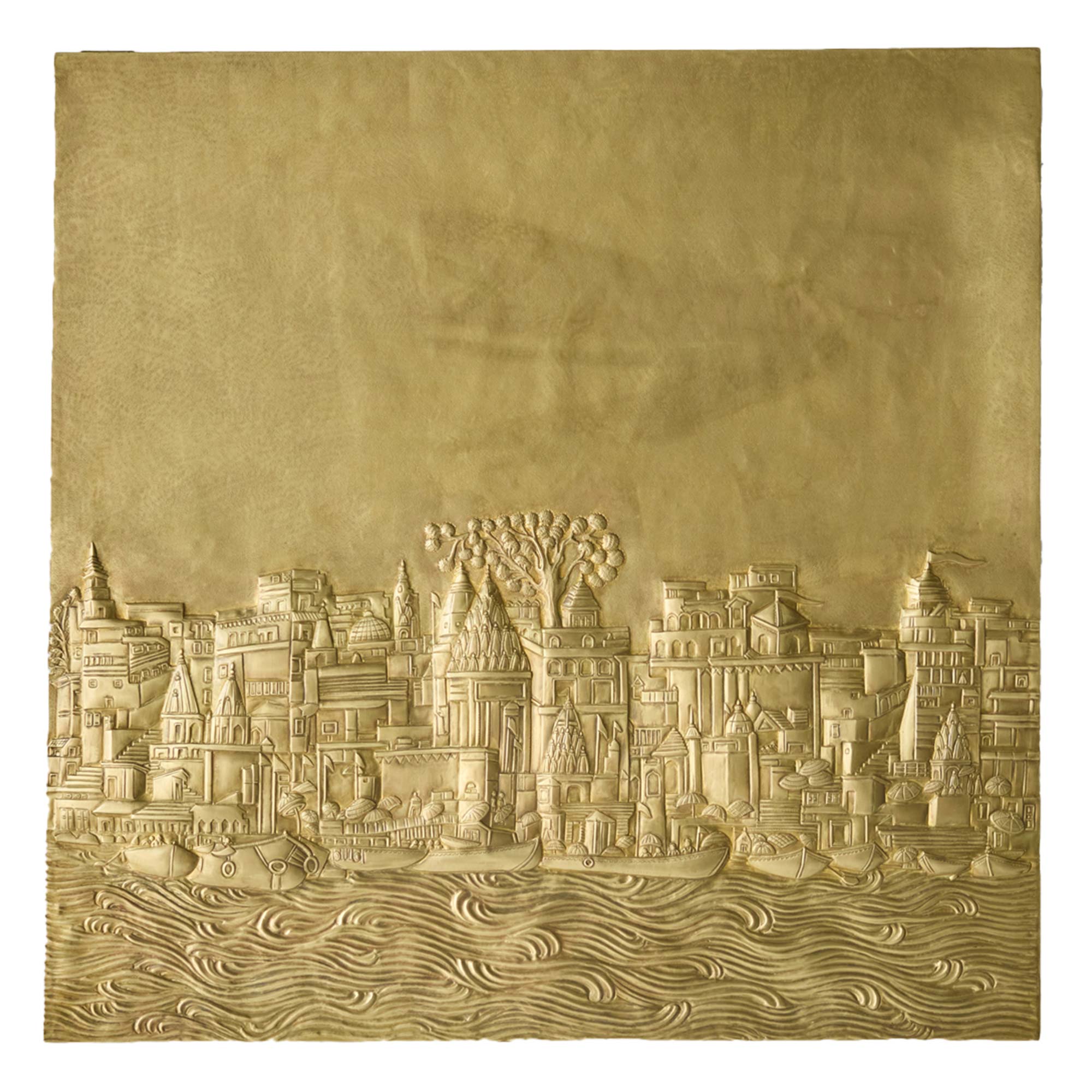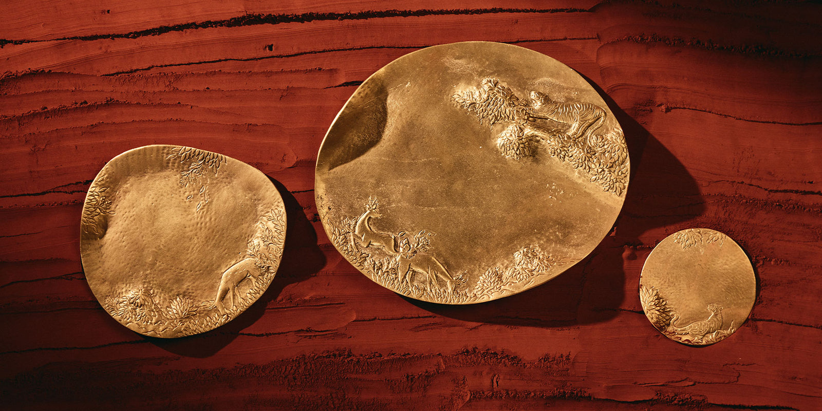 An ode to Banaras in both form and philosophy, the repoussé artworks created in Tilfi’s workshops challenge the very nature of metal. Drawing from the rich heritage of Banarasi looms, metal seems to bend, fold, and ripple in ways traditionally reserved for textiles.