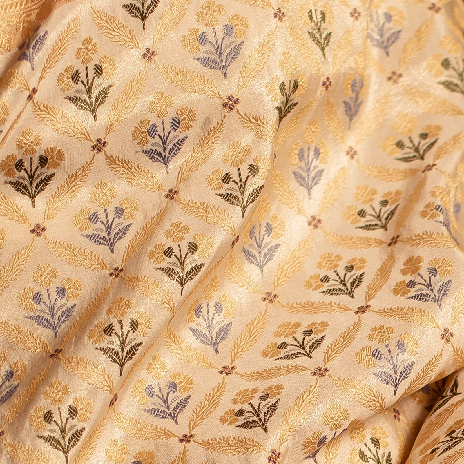 Katan silk is the fine, soft and delicately lustrous kind of silk that has made Banarasi renowned the world over. Katan silk fabrics are made using the finest quality of Mulberry Silk in both the warp and the weft, woven in a plain weave.