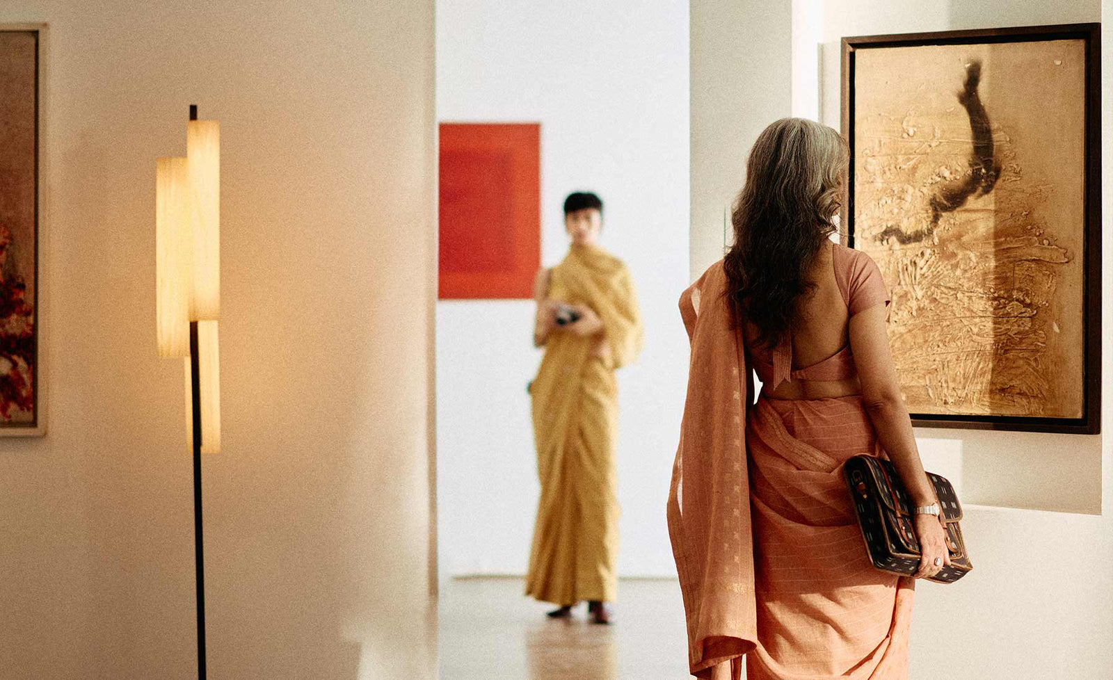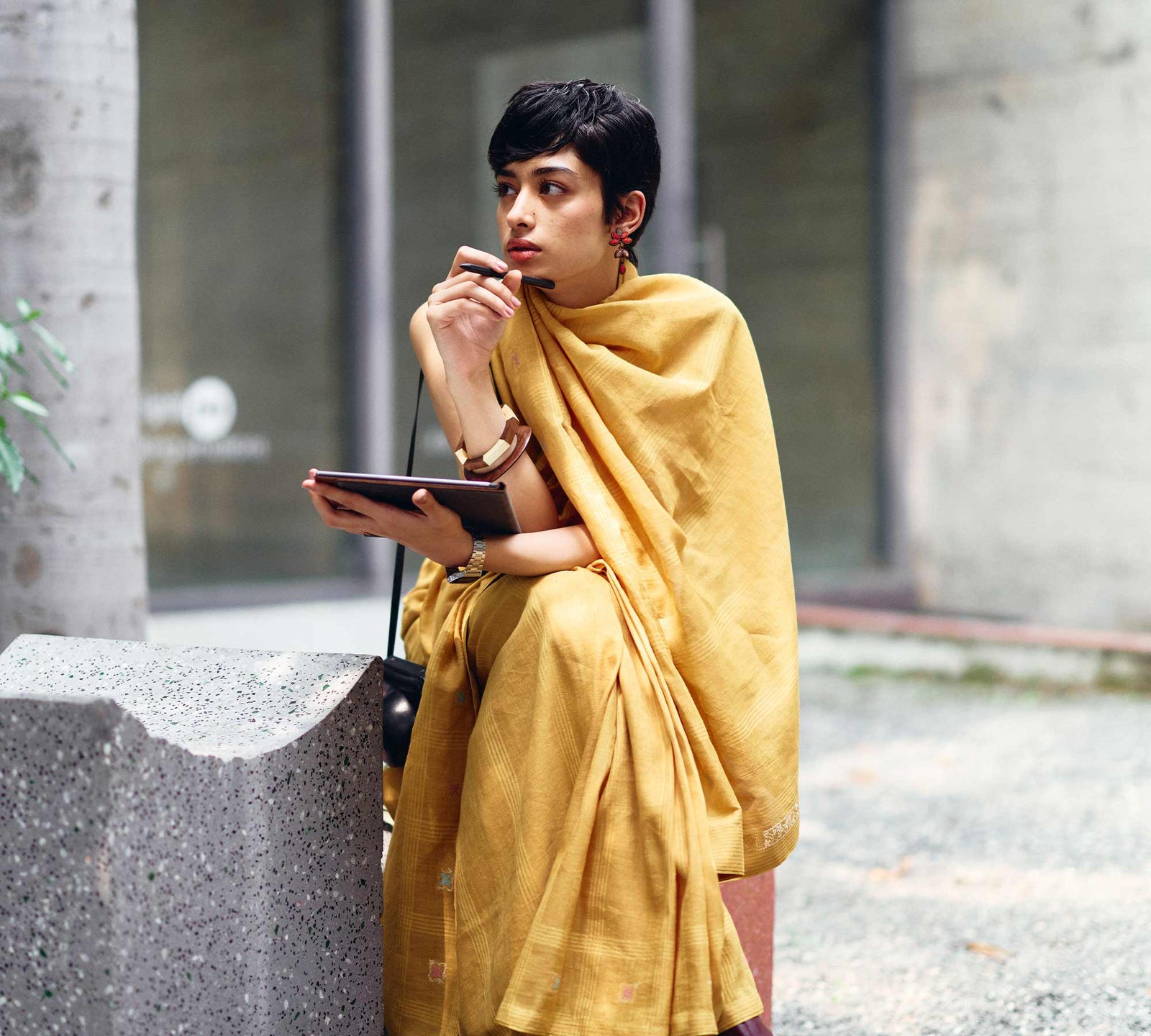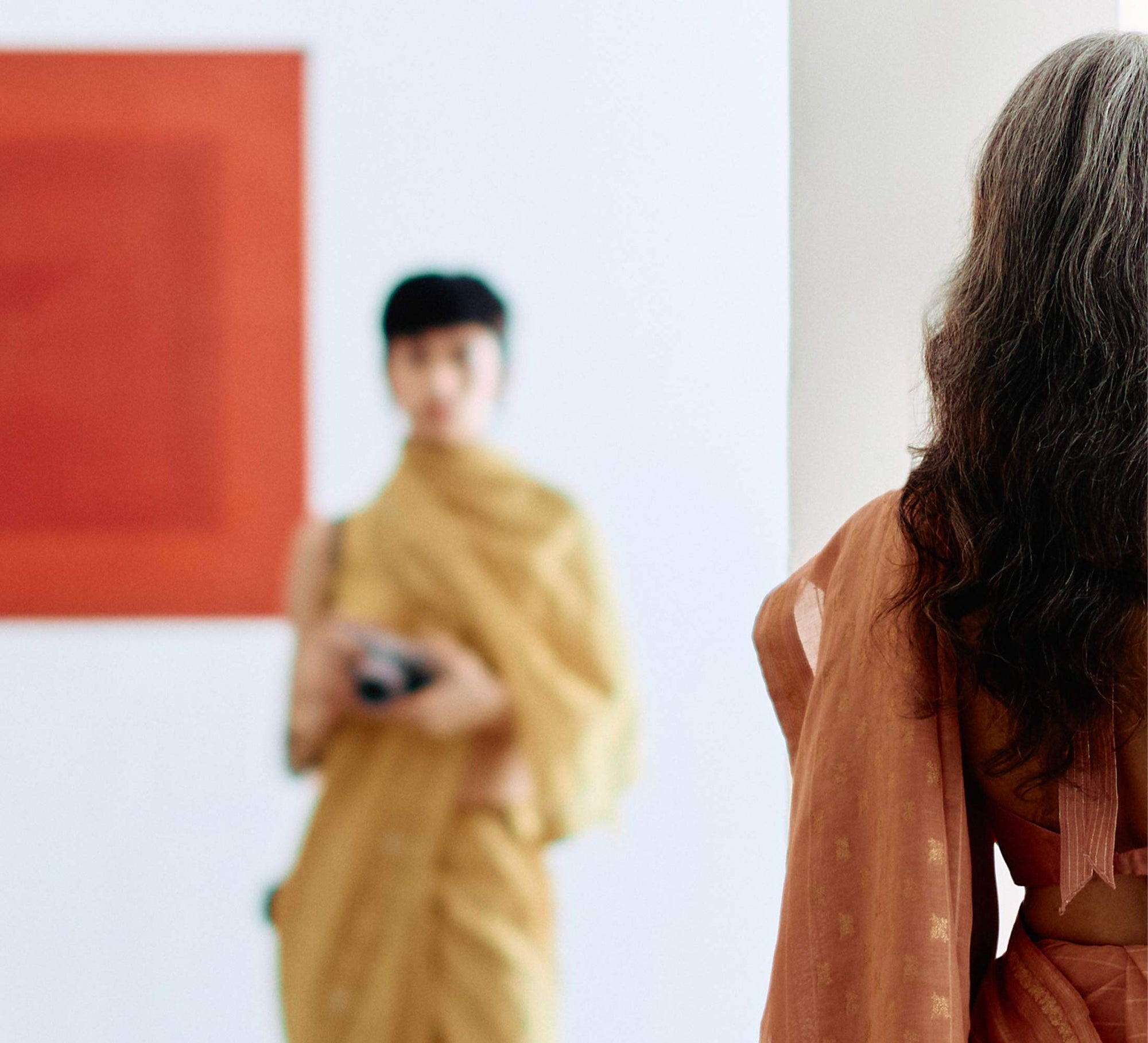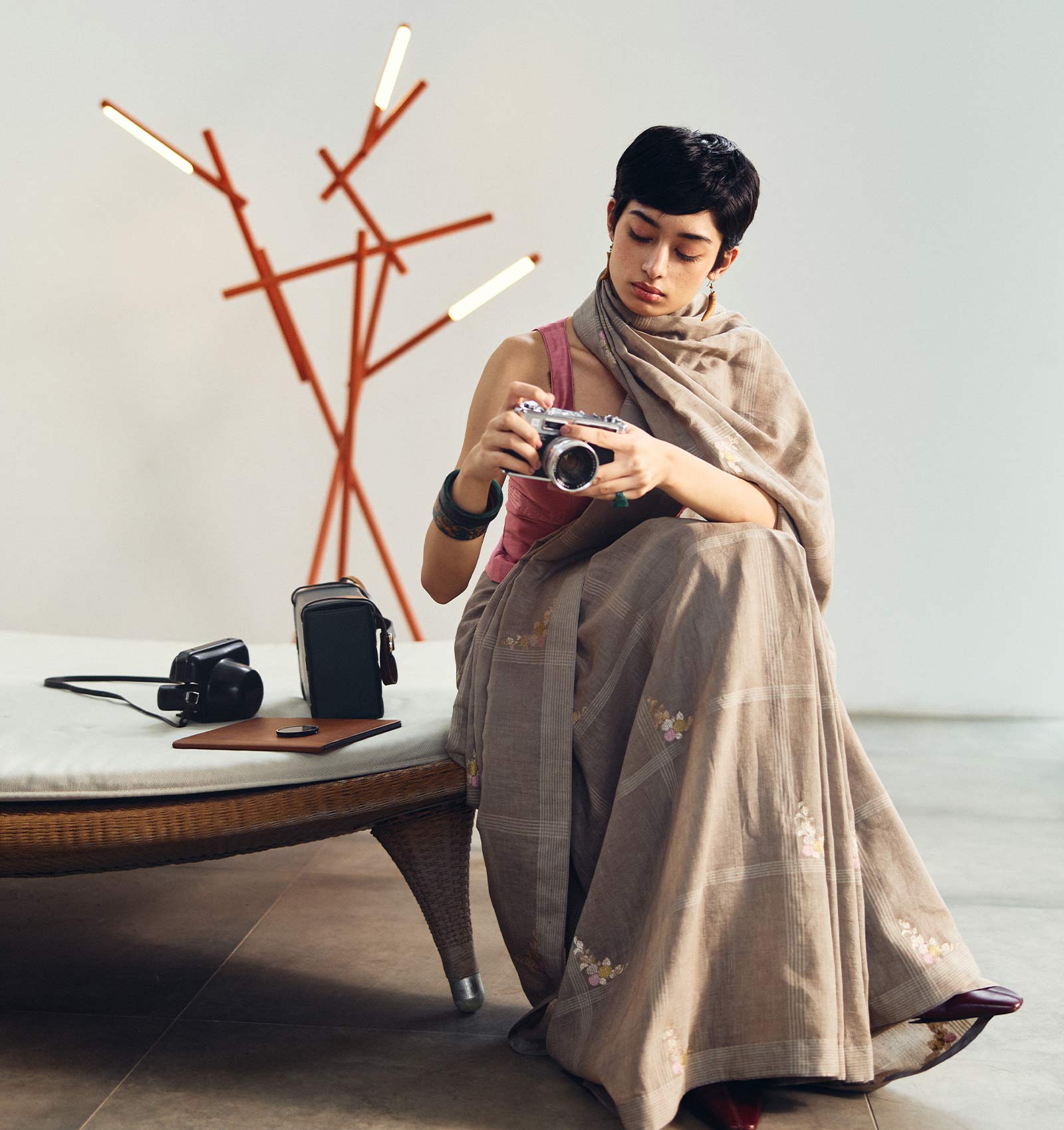 The name Intersections is both literal and metaphorical — a play on the meeting points of craft, materiality, and personality. It is where the precision of Banarasi weaving meets the earthy tactility of linen, and where the inherent versatility of these textiles comes alive in the hands of different wearers.