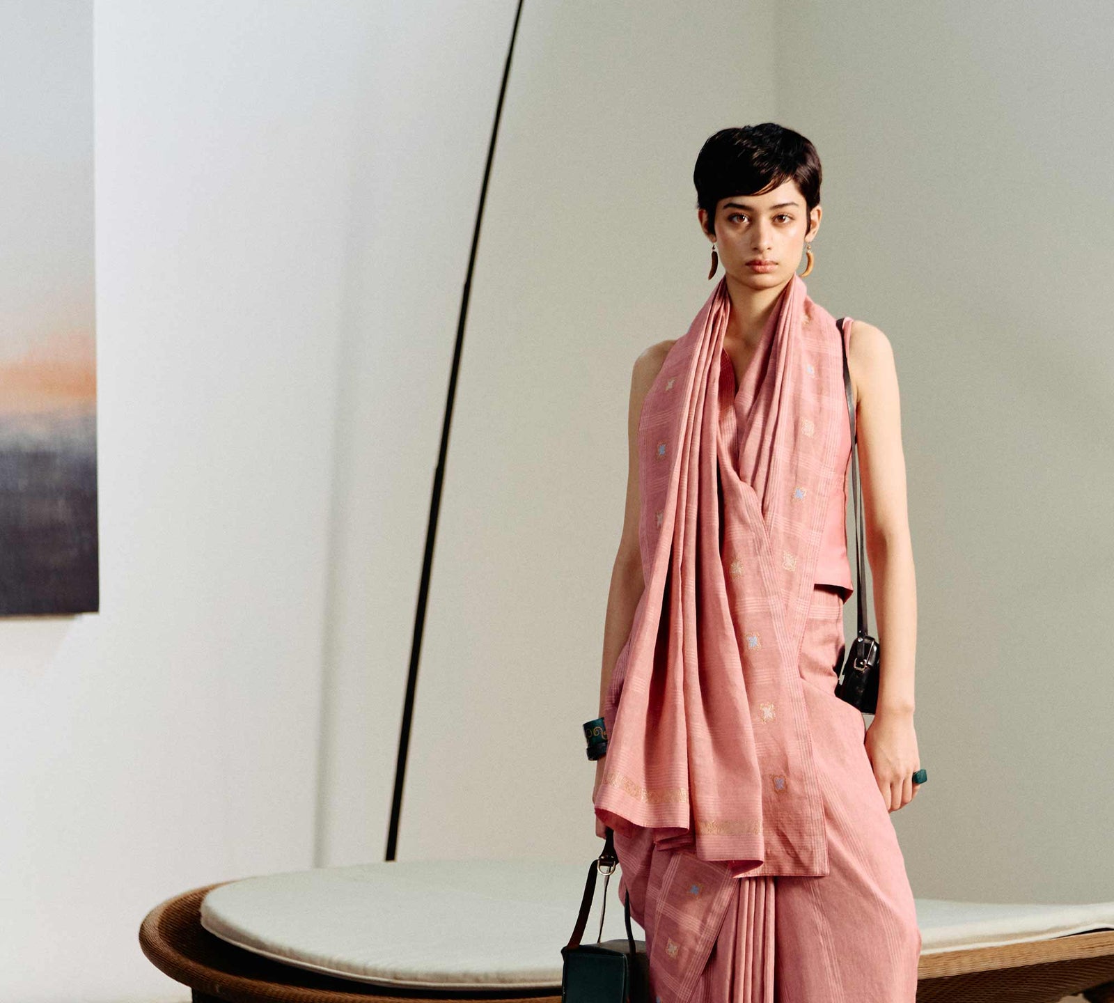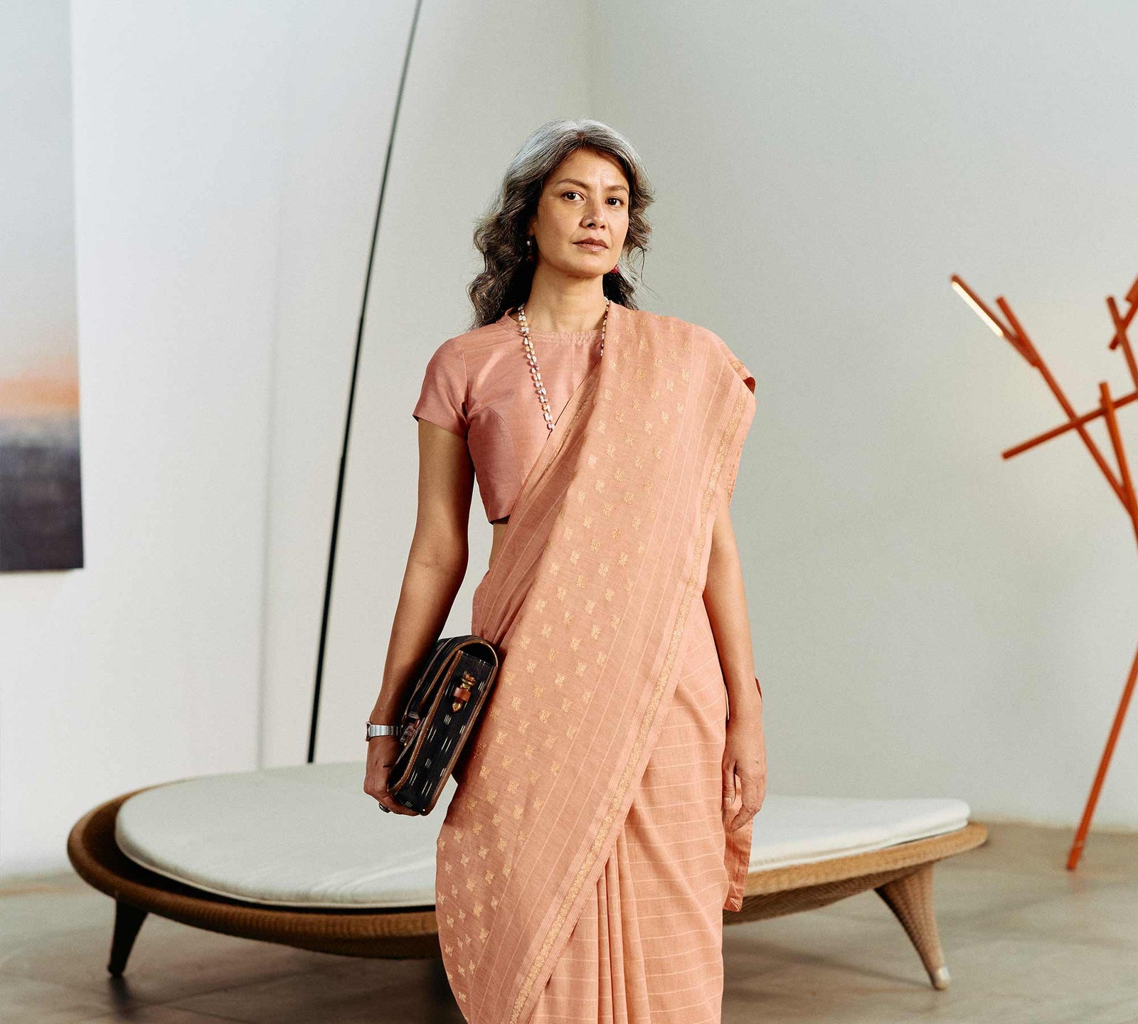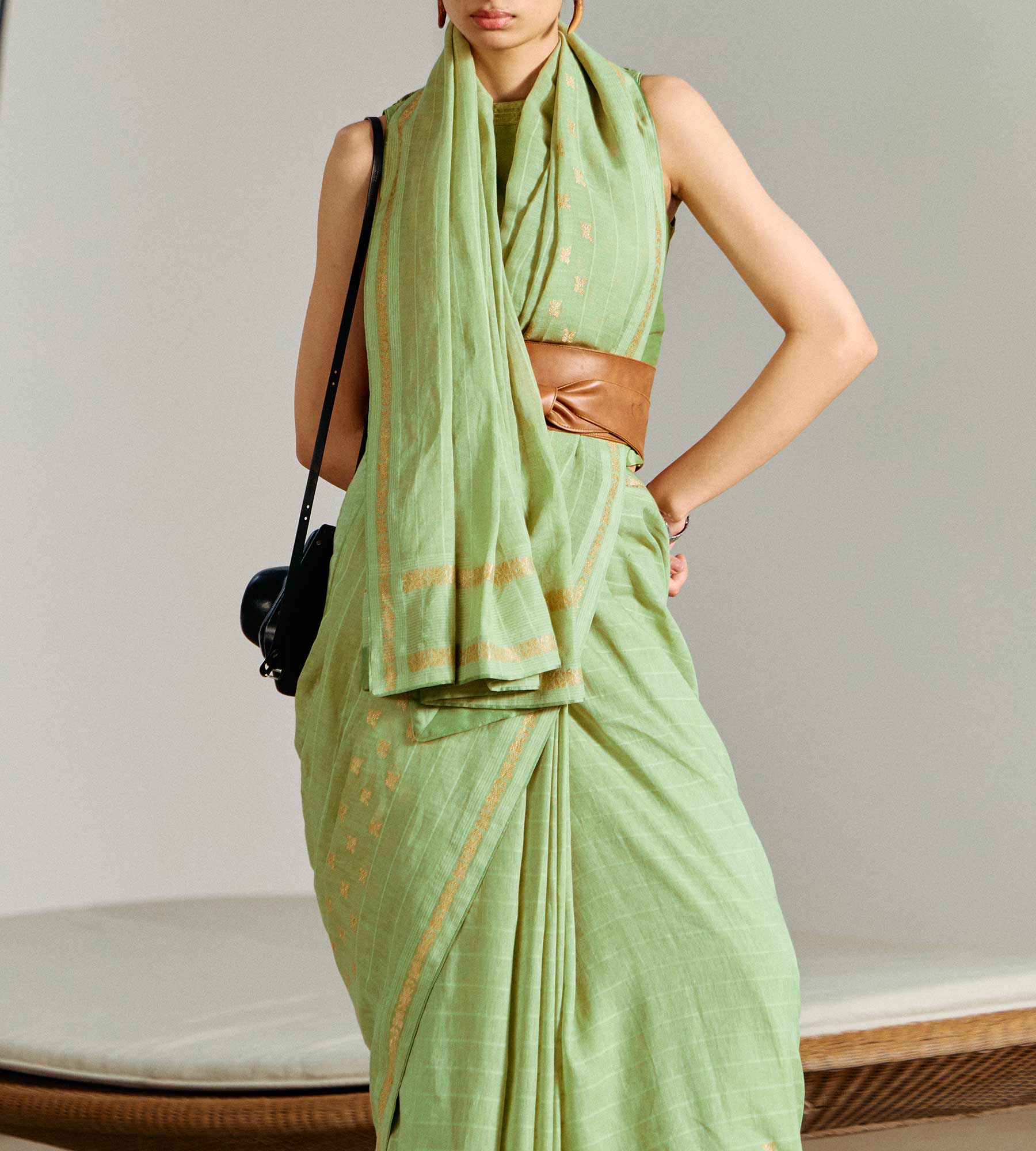Introducing a collection of patterned linen and cotton-by-linen sarees, Intersections marries the quiet tactility of linen fibre with the technical and aesthetic language of Banarasi handloom.