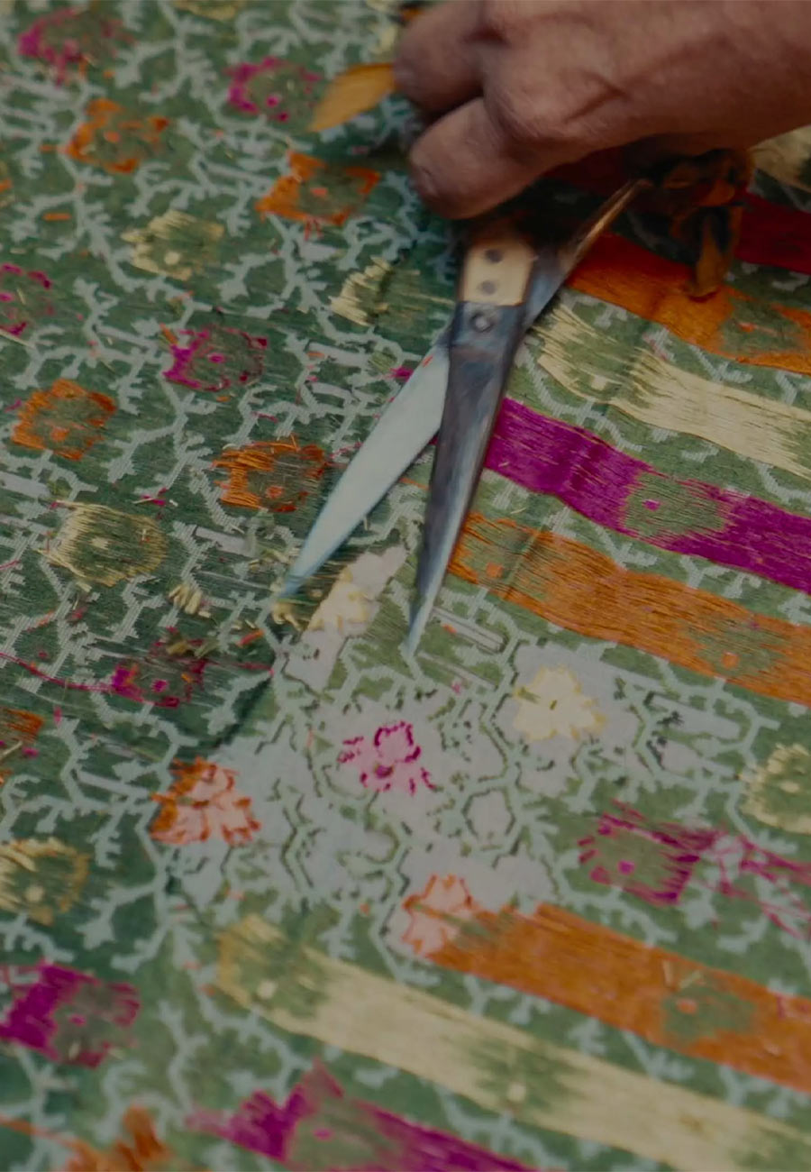 LEARN MOREA handloom rafoogar is a master at fixing the tiniest of tears and flaws on textiles. Using extra yarns, they create structures similar to that of the base fabric, making the rips almost invisible.