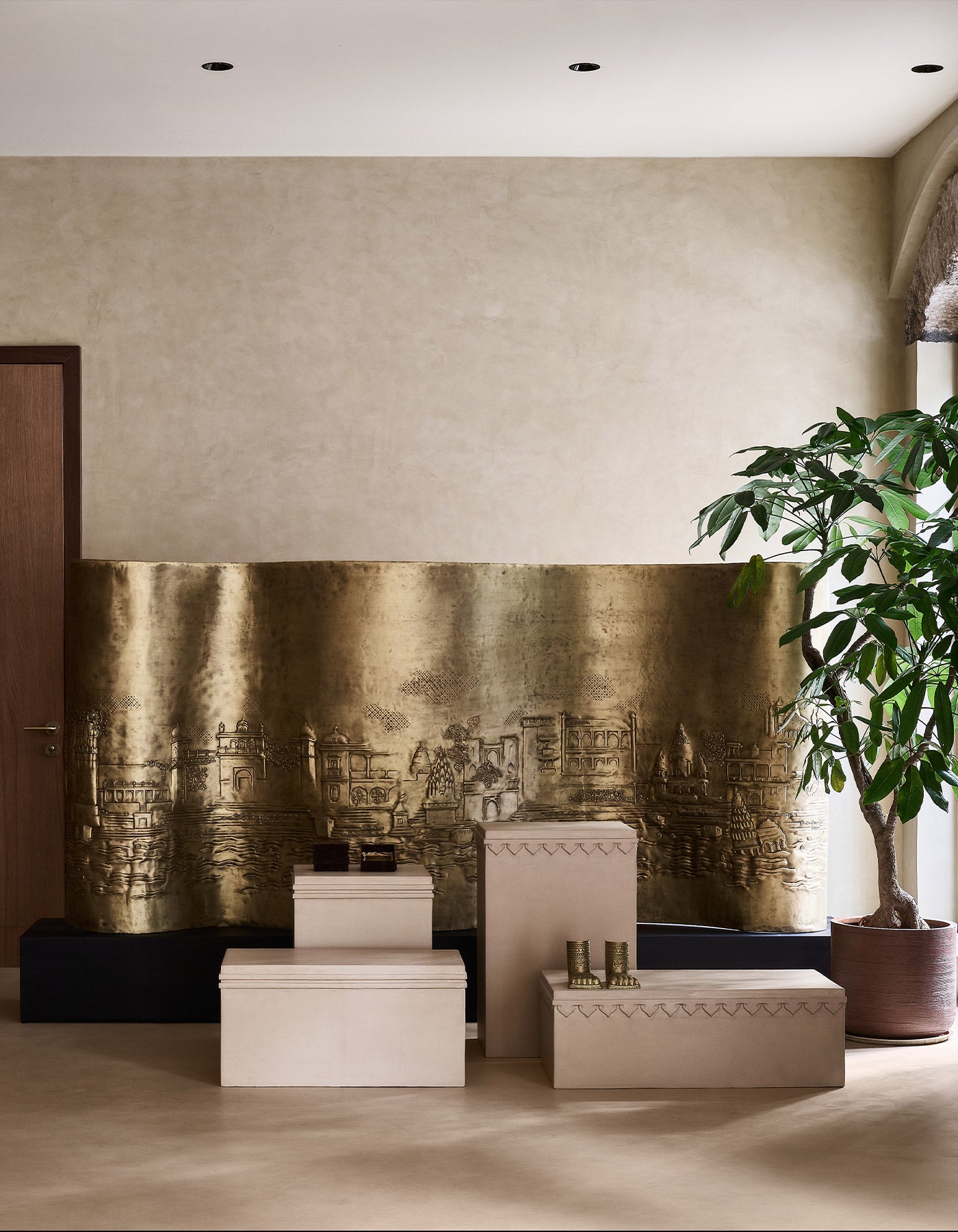 Alongside our celebrated Banarasi weaves, the space features the revered art of metal repoussé. Meticulously crafted by Banarasi artisans, these intricate pieces tell vibrant stories of the city’s rich and multifaceted craft heritage.