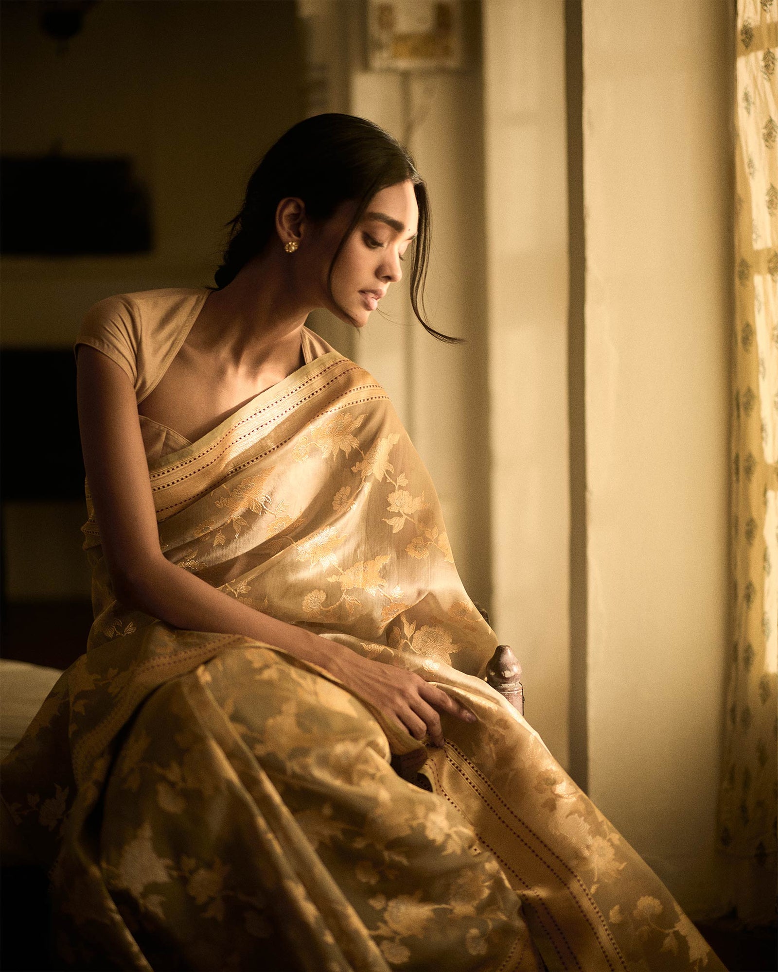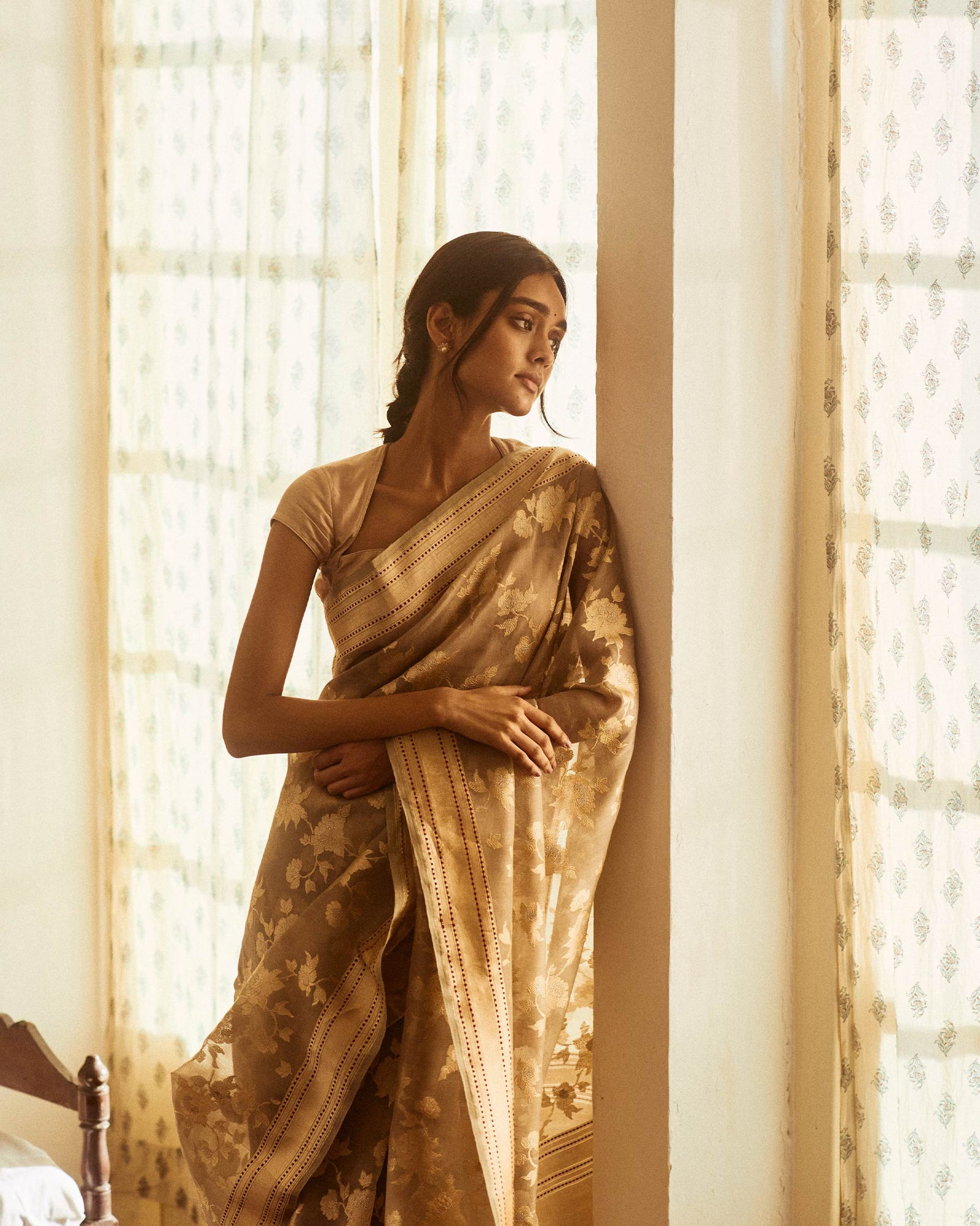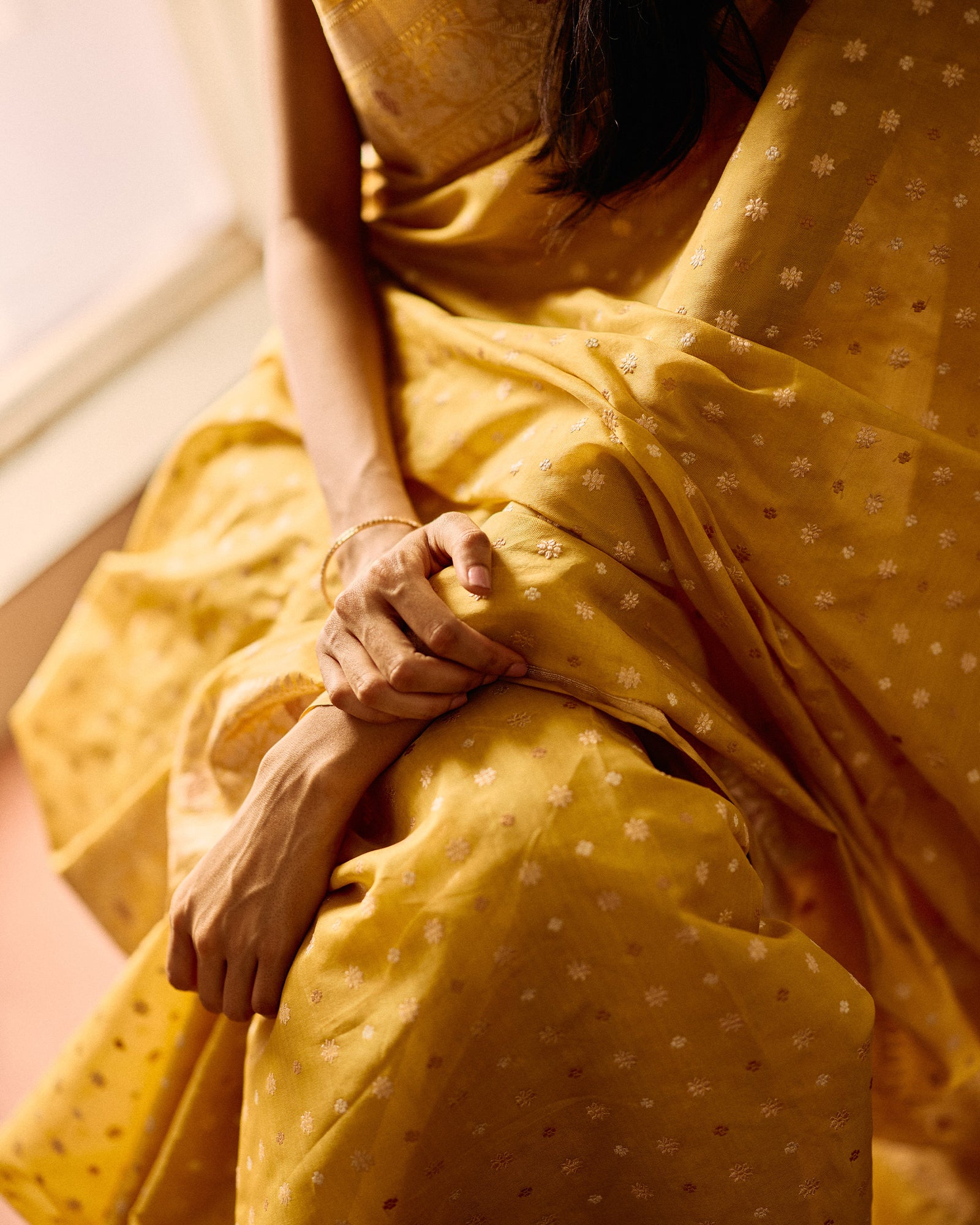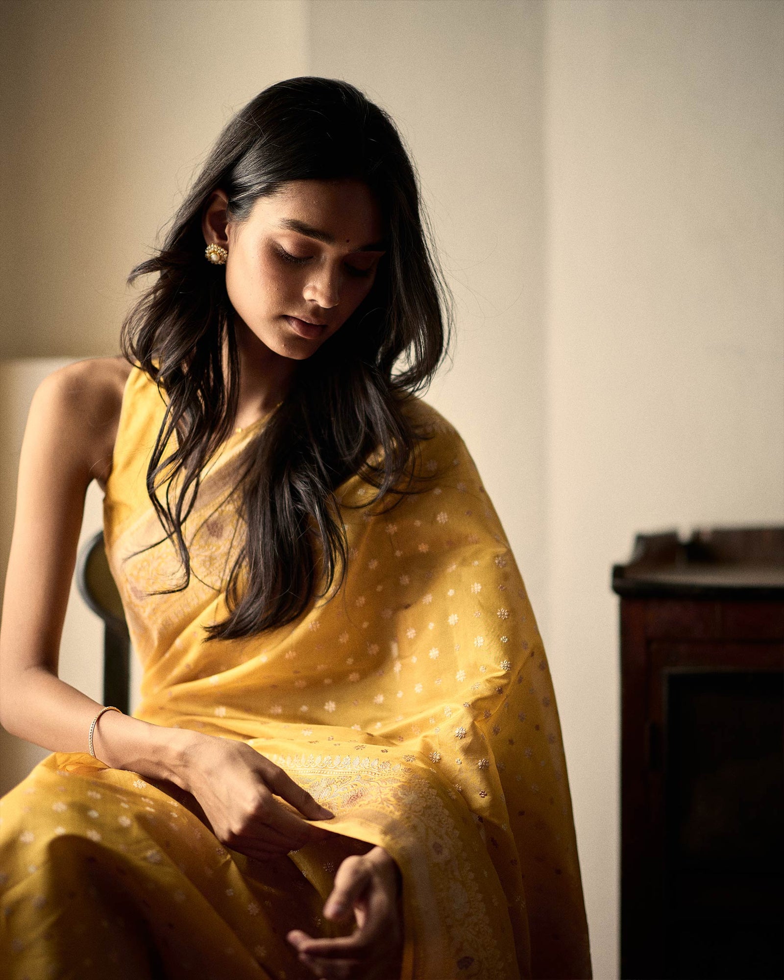 A capsule of six handwoven creations, each bearing the imprint of classical design, woven in Banaras using heritage techniques of exceptional finesse. Crafted in Kora silk and its diaphanous tissue variants, the collection celebrates the airy grace and archival complexity of museum-grade weaving.