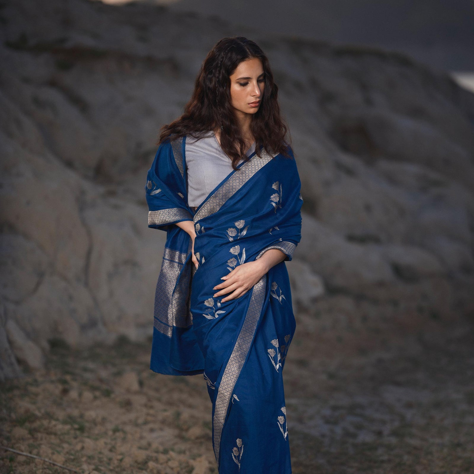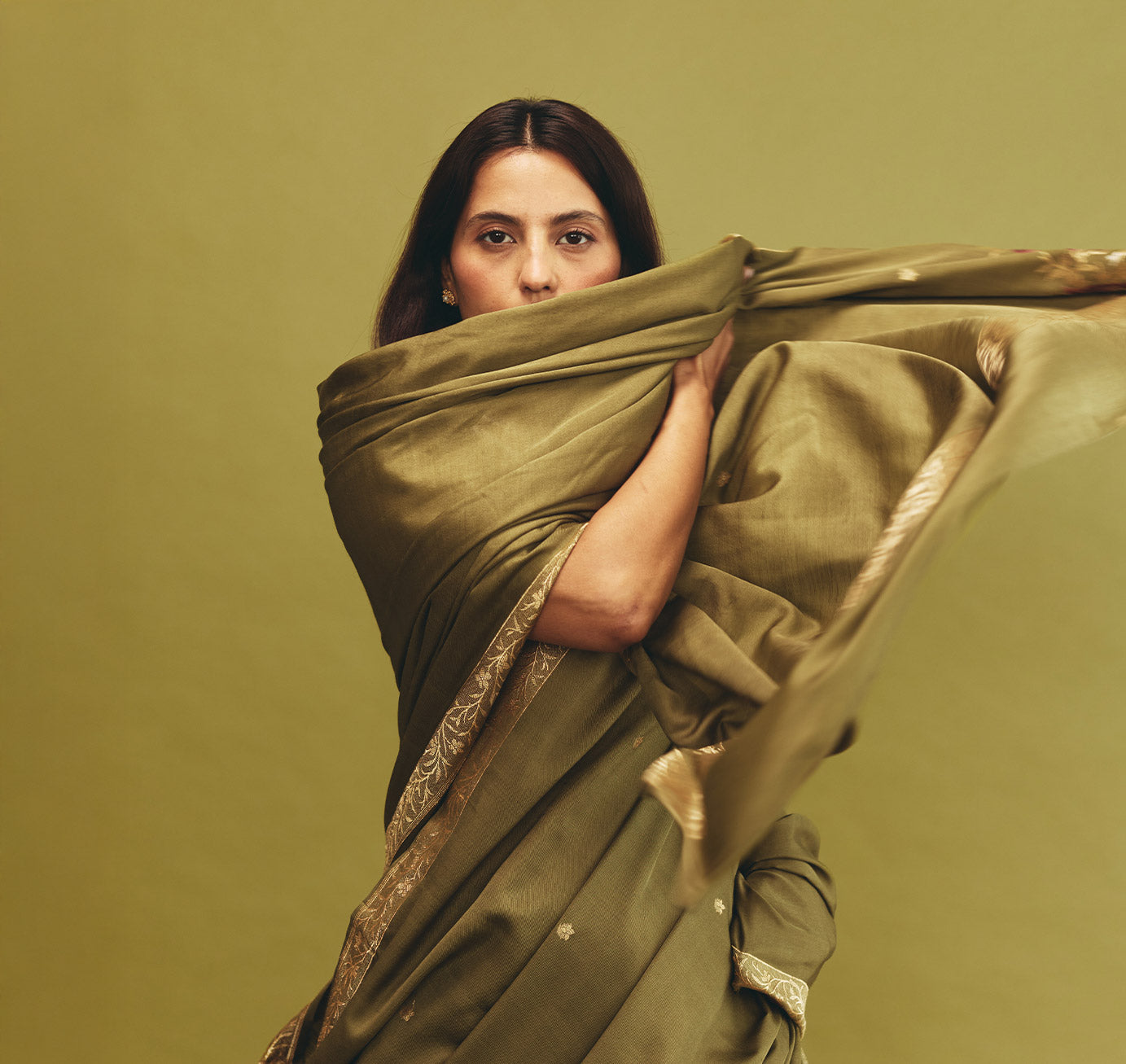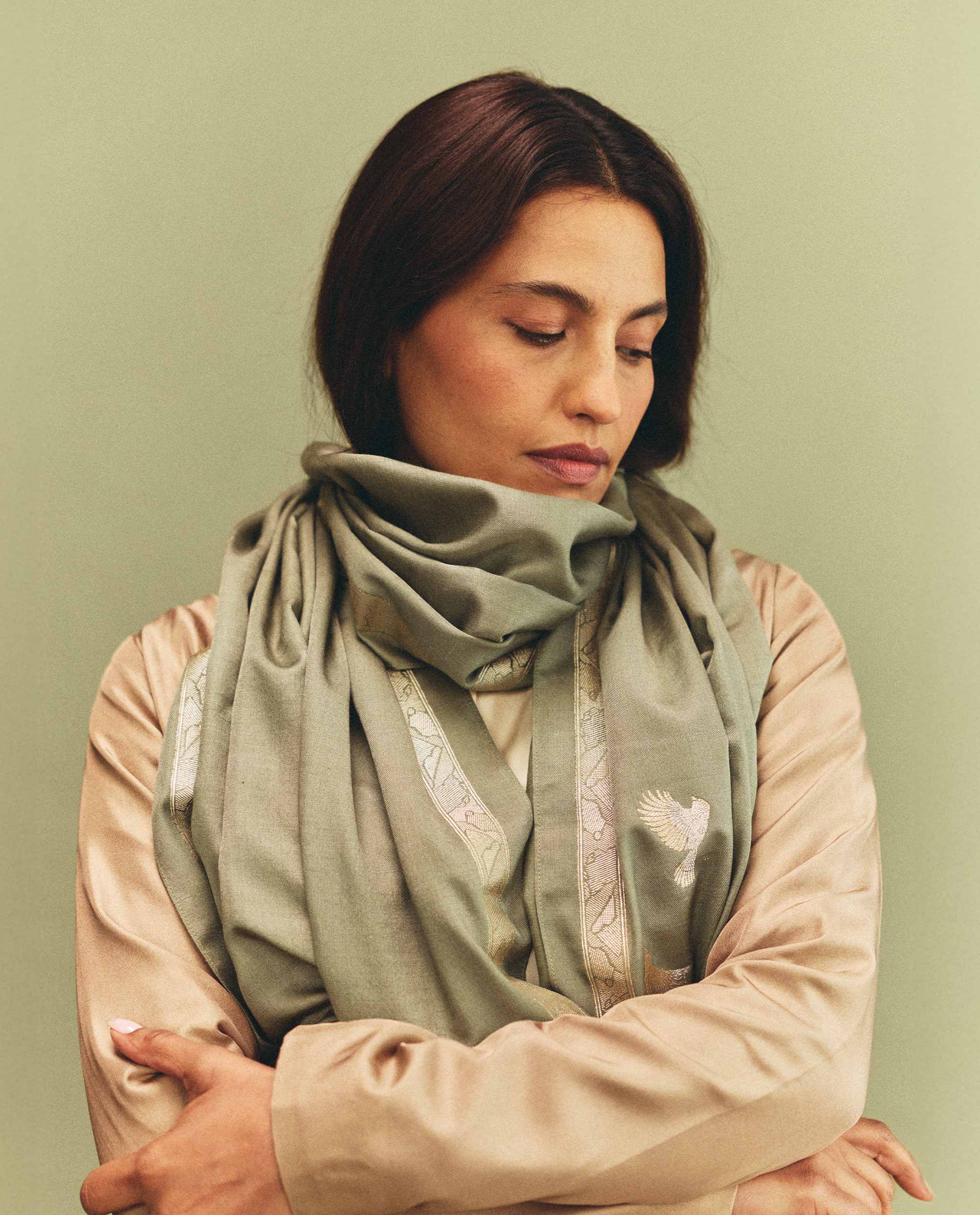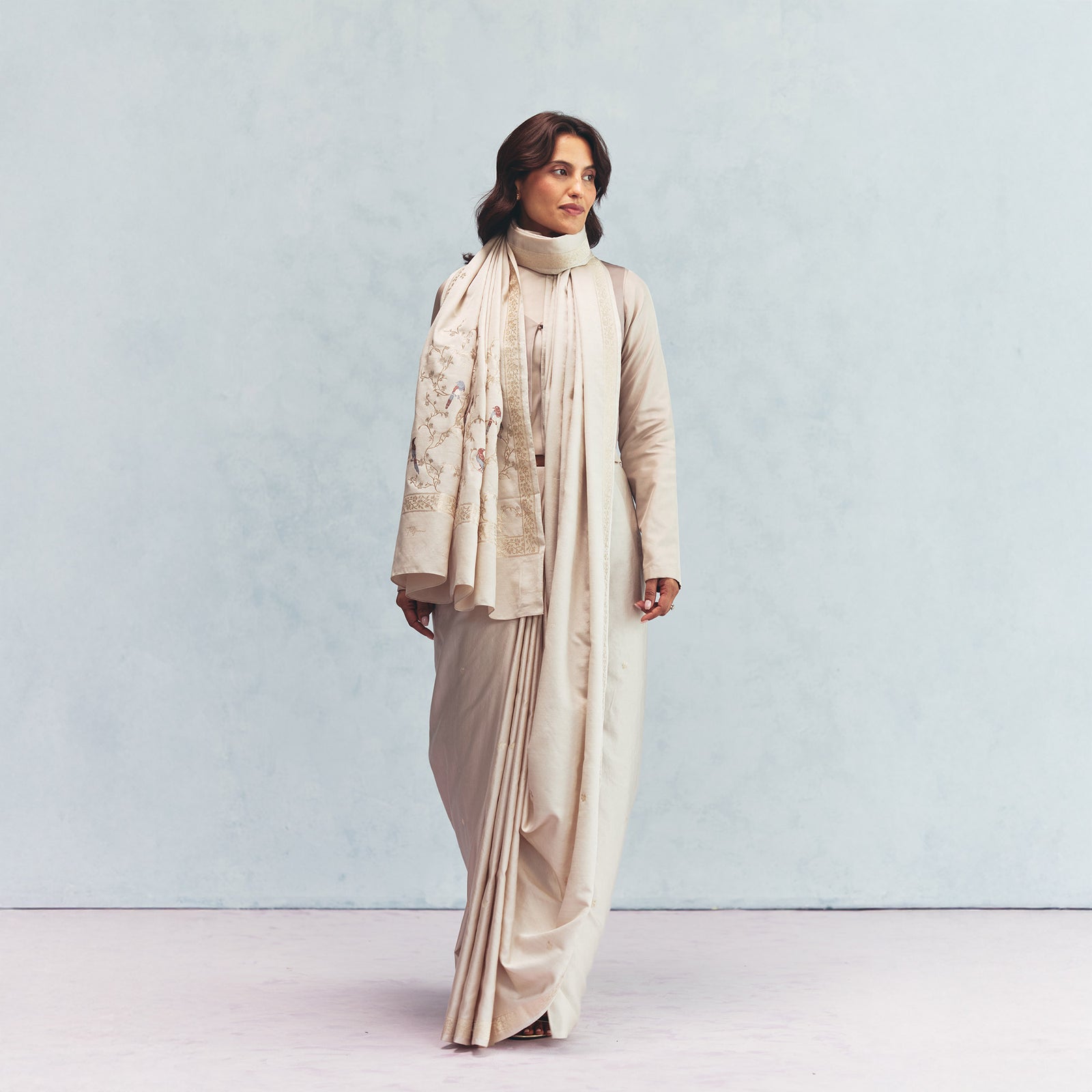 From this stillness, the collection finds its transformation. Silk & Wool turns inwards toward the thresholds where tradition evolves by deliberate design. Rather than ruptures or chance occurrences, the collection emerges from intentional departures. Moments where the familiar is re-examined, where legacy opens itself to new interpretations. The essence of Banarasi’s past is not replicated but consciously rearticulated, imprinted onto the present through refined patterning, earthy palettes, and enduring Kadhua weaves.