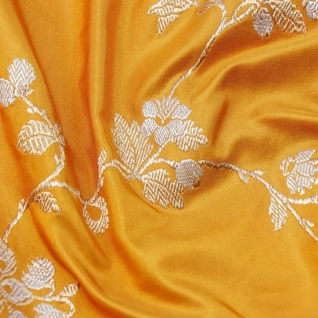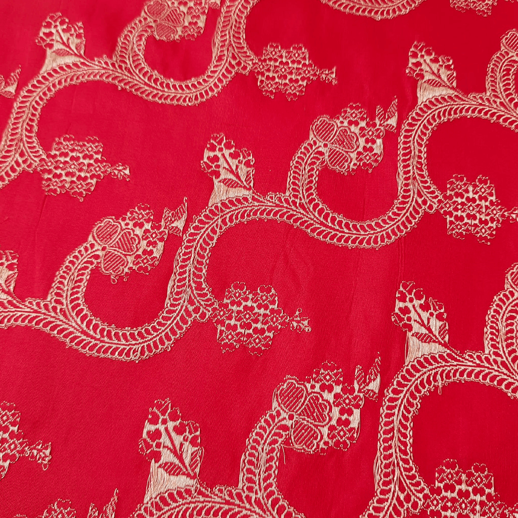 Zari Vasketis a Banarasi weaving technique that has been passed down through generations. It involves the meticulous use of a supplemental zari weft throughout the body, which leaves minimal float on the back of the fabric. Textiles woven in this weaving style are adorned with all-over zari, which gives them a rich and lustrous appearance.