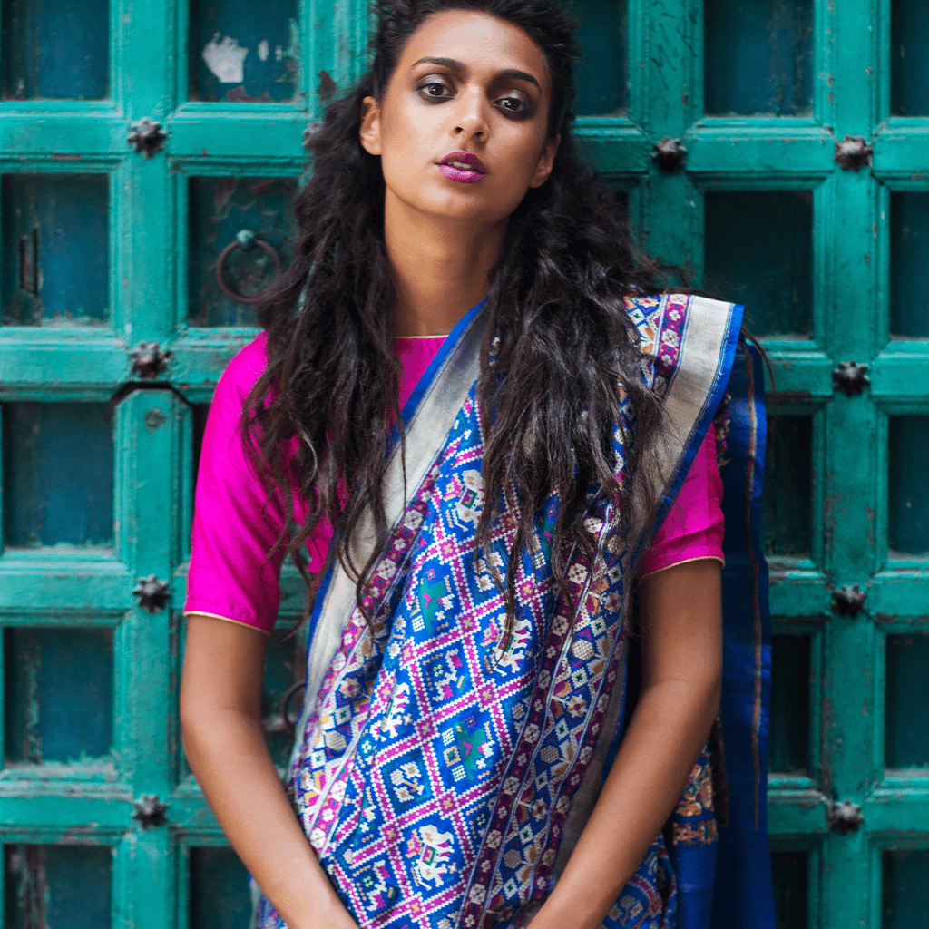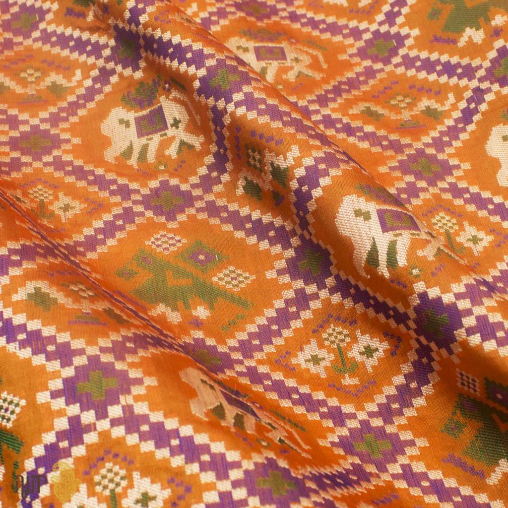 Traditionally handwoven by the resist dyeing process in a town called Patan in Gujarat, Patolas are double ikat sarees. Banarasi weavers, forever seeking inspiration, have adopted many distinctive Patola patterns and incorporated them in their weaving designs to make Banarasi Patolas. Unlike Gujarati Patolas, Banarasi Patolas involve the use of supplementary coloured yarns on a shuttle, which are then woven into the fabric to produce the final design.