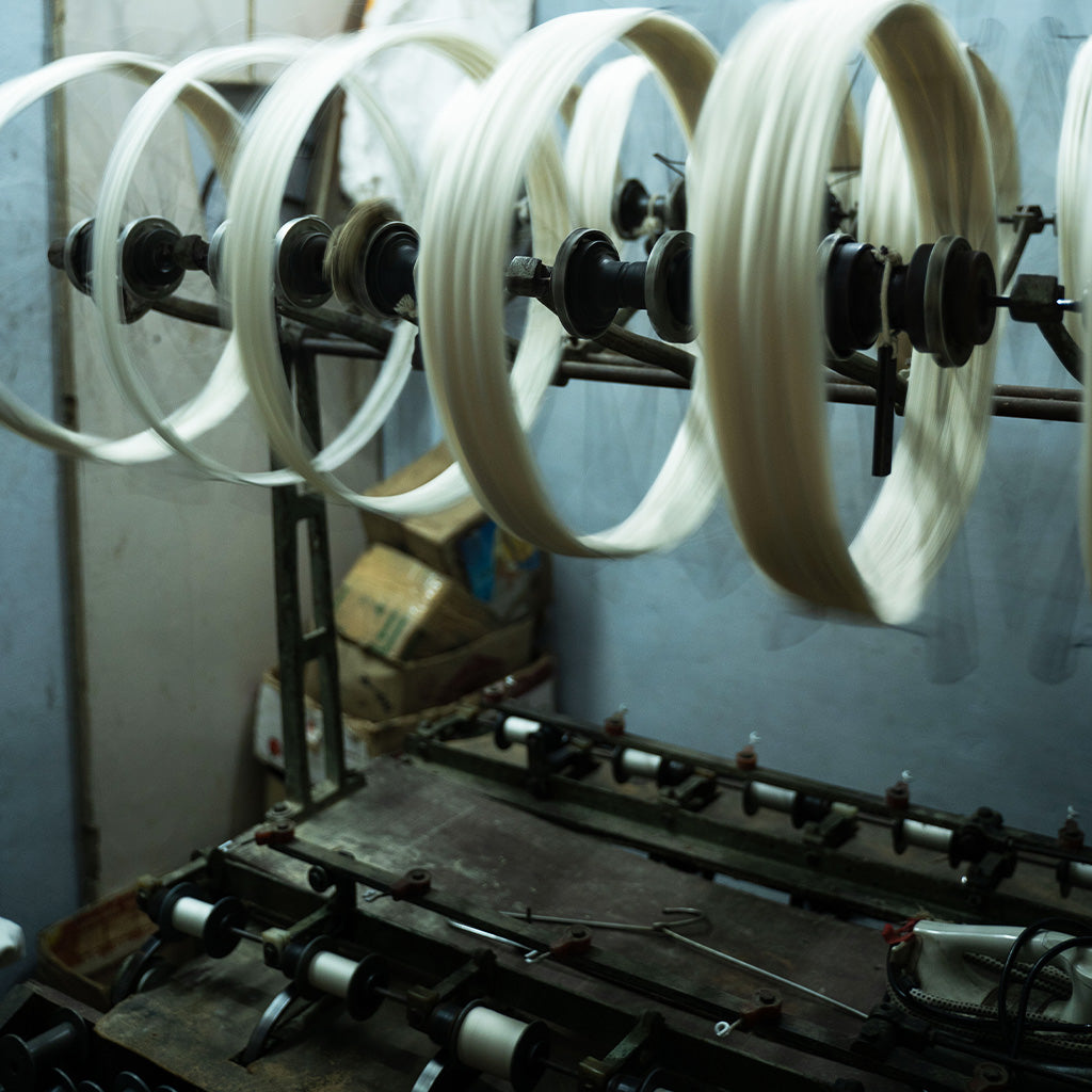 In the process of reeling (tying the yarn in a bundle), the threads are separately mounted on the reeling machine, for the warp (tana) the yarn is rolled on a shuttle (dharki). The yarn for weft (bana) is firstly mounted on a charka and then rolled on the bobbin.