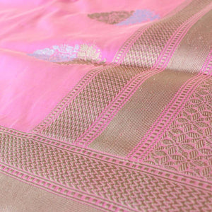 An entirely captivating piece in resplendent silk! This Banarasi treasure with roopa sona zari bootas and fine kadhua weave is timeless in its appeal.