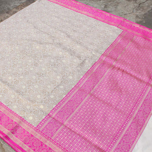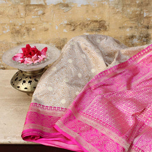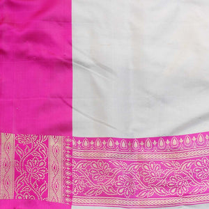 Color - A graceful shade of Off-white with a border in Gulabi Pink