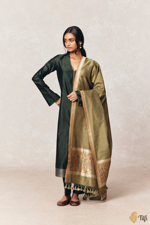 'Anar Lata' Green Pure Katan Silk Banarasi Handloom Dupatta