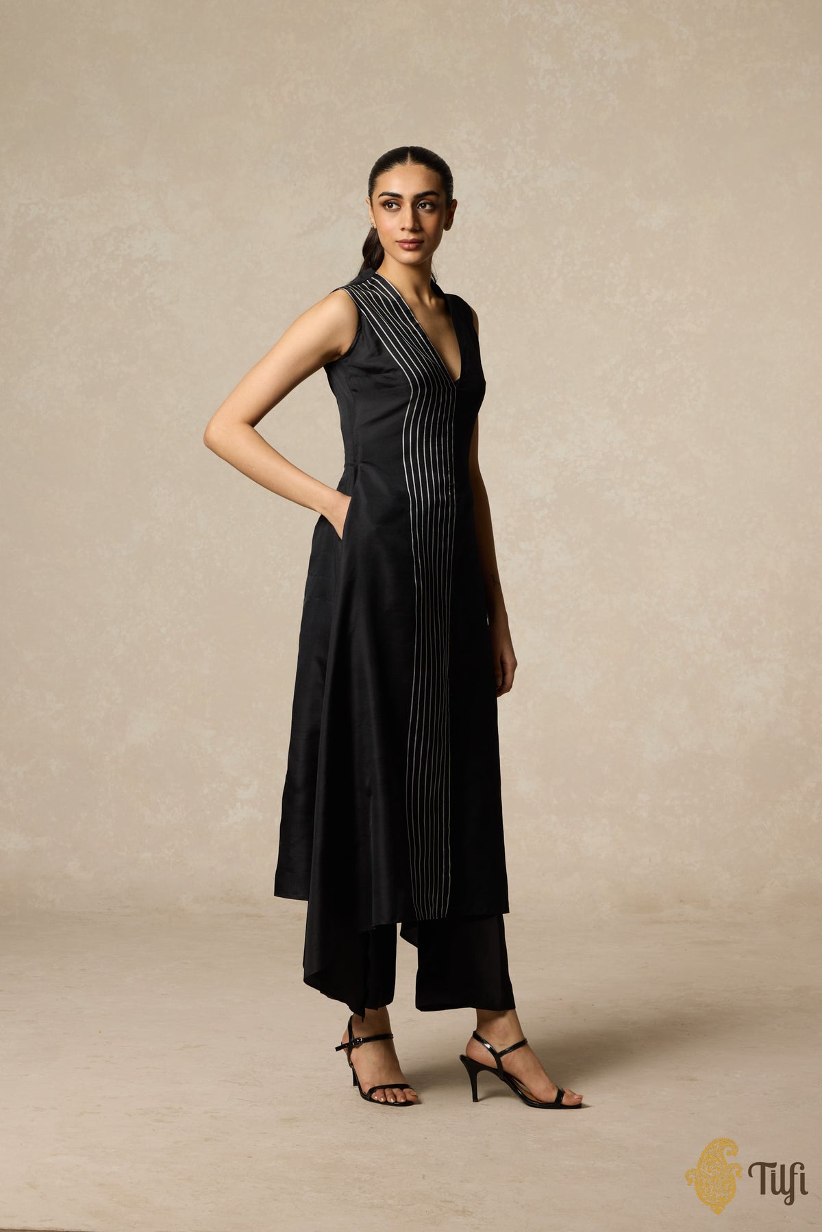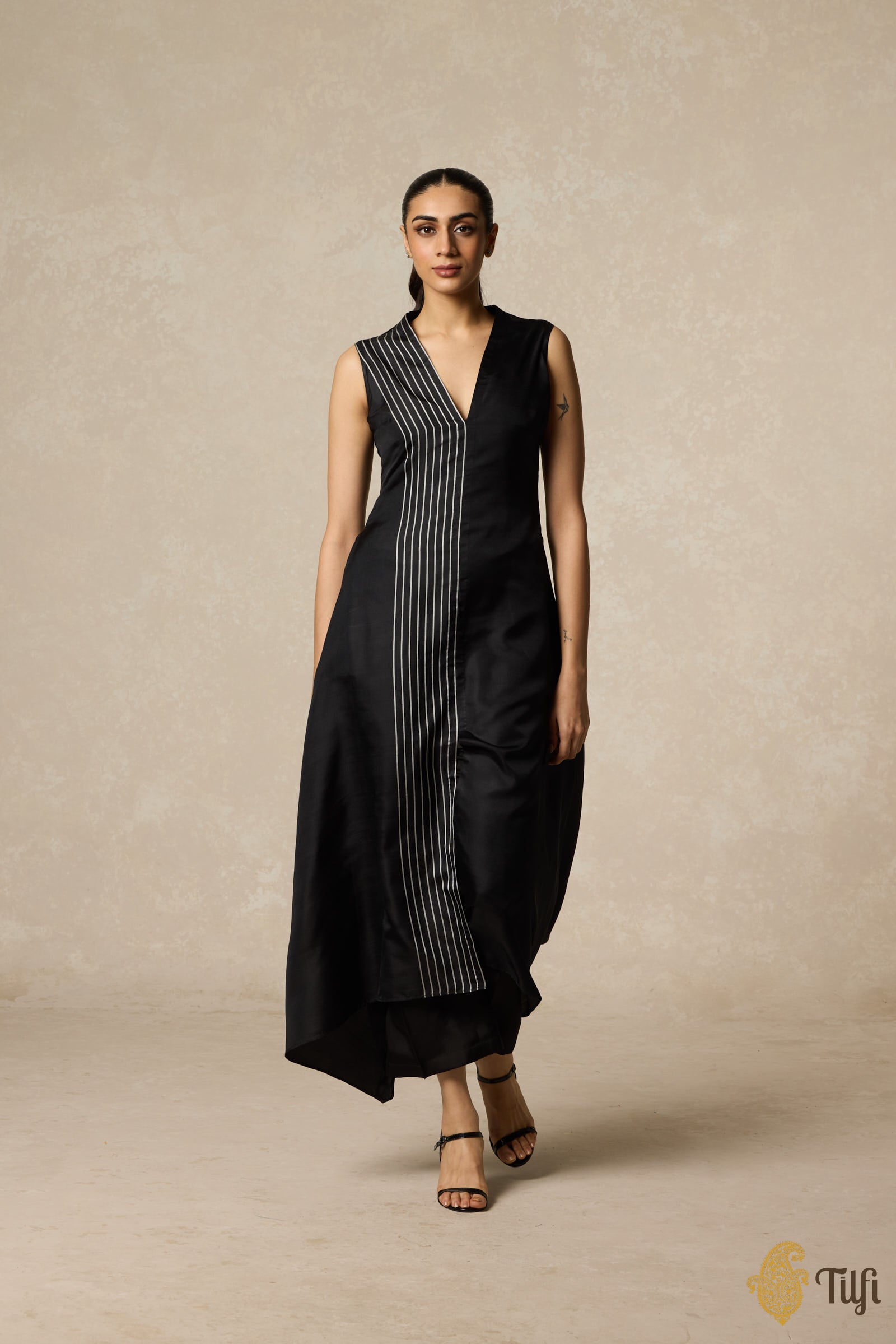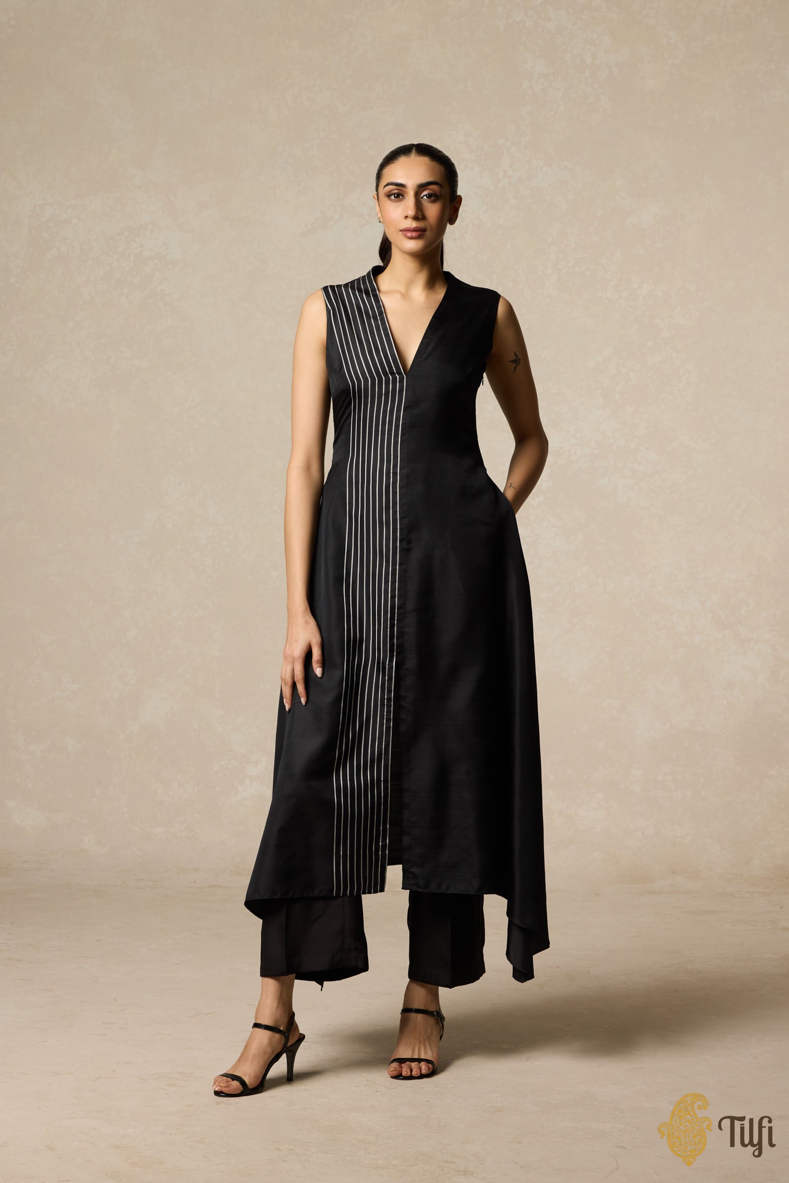 • Collection note - Tilfi’s Twill collection is an ingenious exploration in handloom fabric. Inspired by the Minimalist art movement, it combines simplicity and boldness in silk twill. The designs are influenced by artists like Agnes Martin, Barnet Newman, and Frank Stella, emphasizing geometry, repetition, and asymmetry.