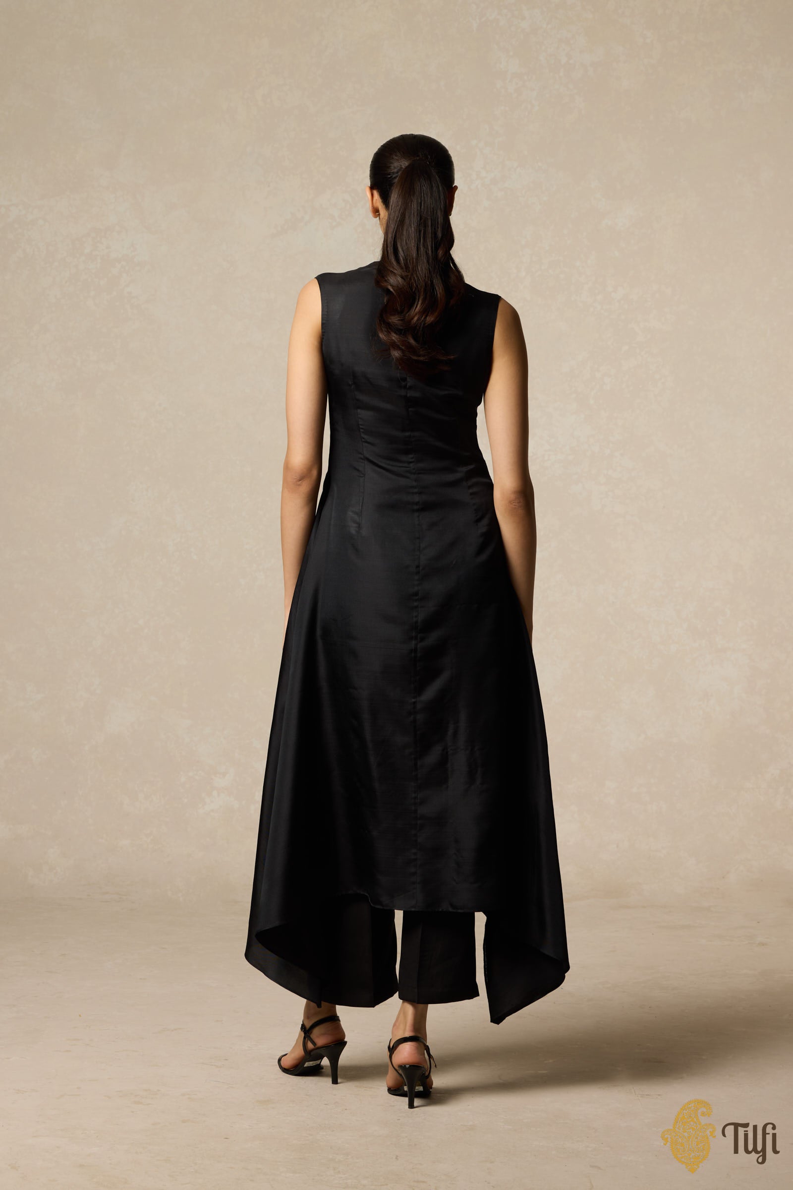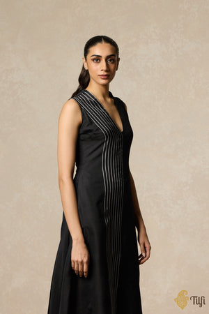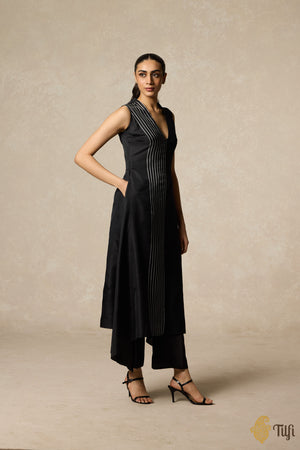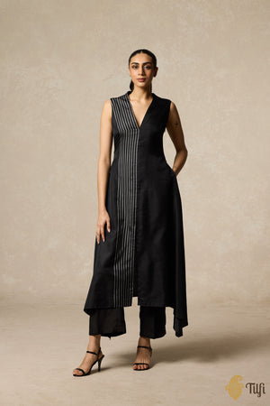 Black Handwoven Pure Silk Twill Asymmetrical Kurta Set