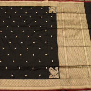 Technique - Classic handwoven Banarasi art passed down through generations with a koniya aanchal. Kadwa weave bootis. The elaborate and laborious Kadwa (Kadhua) technique involves hand-weaving each motif separately. It takes longer on the handloom, but makes a more robust pattern, which stands out on the fabric.