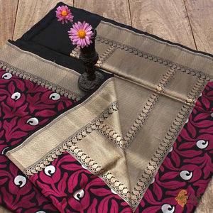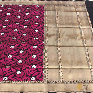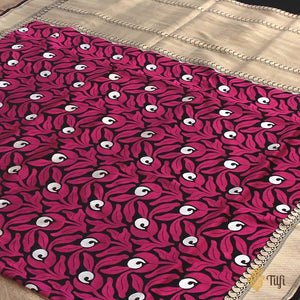 Technique - The finest Tanchoi weaving technique, which employs one or more warps and multiple coloured wefts to produce a self-design which covers the body of the saree.