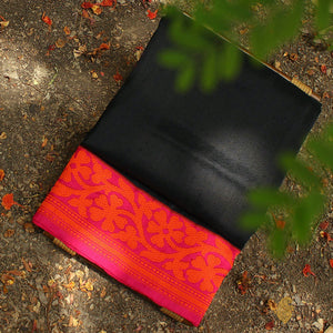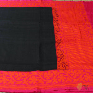 Technique - Classic handwoven Banarasi art passed down through generations of weavers. Kadiyal helps achieve a border in a sharply contrasting color using multiple changes in warp and the weft shuttle.