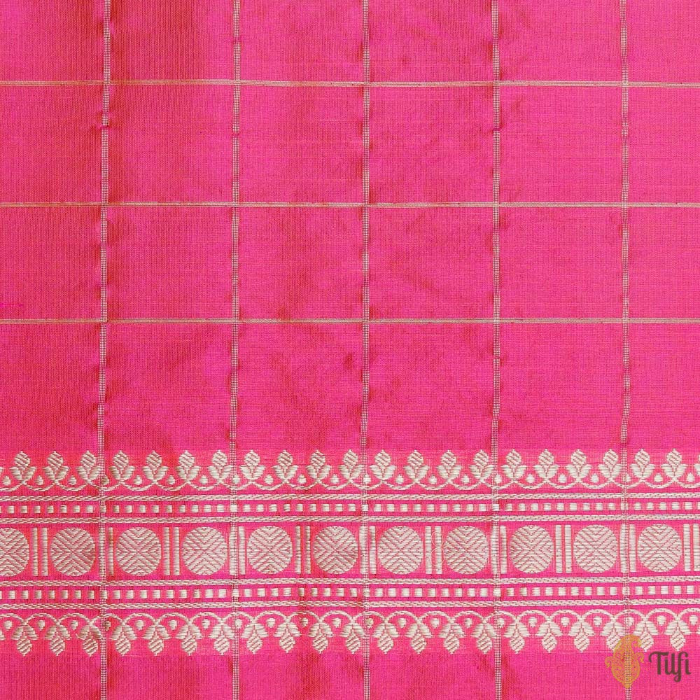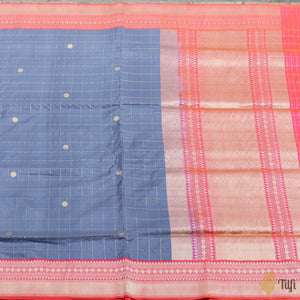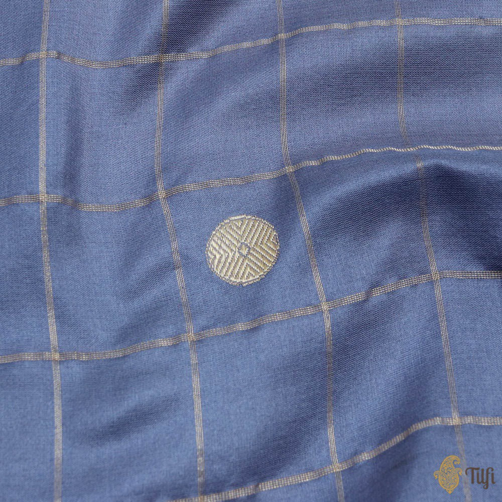 For the urbane, worldly woman, proud and firmly rooted in India's heritage! A versatile handloom classic in finest katan silk, a contemporary checkered body with delightful kadhua asharfi bootis in roopa sona zari and a kadiyal border.