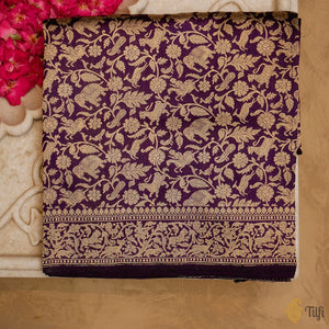 A stunning Banarasi handloom classic. A timeless drape with a melange of human figures, animal motifs, and scrolling vines in zari. An ode to the royal hunting traditions and a testament to the skill of our master weavers.