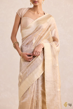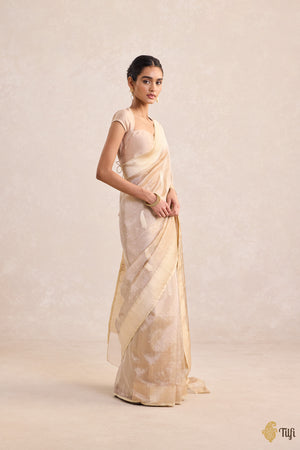 'Drifting Light' Gold Pure Tissue Banarasi Handloom Saree