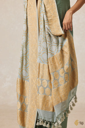 Dusty Blue Pure Georgette Banarasi Handloom Bandhani Dupatta