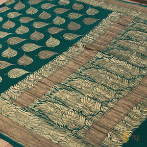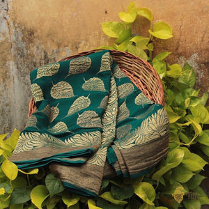 In life and in fashion, "adopt the pace of nature, her secret is patience"...This beautiful handloom saree, with individually handwoven leaves in gold and antique zari and all its splendor, reminds us of the joys of slow fashion.