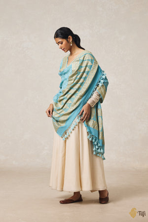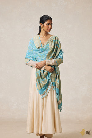 Firozi Blue Pure Georgette Banarasi Handloom Bandhani Dupatta