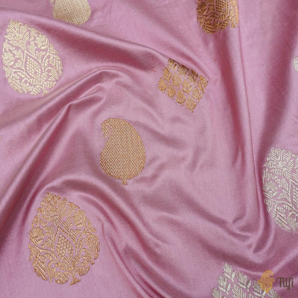 Technique - An enduring Kadwa weave and fine Meenakari technique. The elaborate and laborious Kadwa (Kadhua) technique involves hand-weaving each motif separately. It takes longer on the handloom, but makes a more robust pattern, which stands out on the fabric. Meenakari involves the painstaking addition of supplementary coloured resham threads during the hand-weaving process.