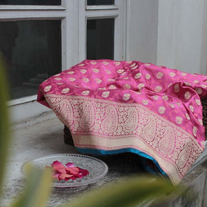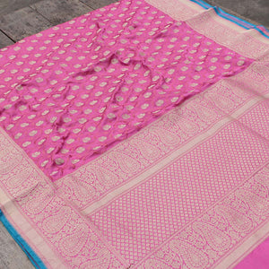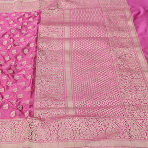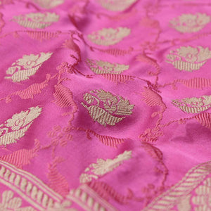 Gajri Pink Pure Soft Satin Banarasi Handloom Saree