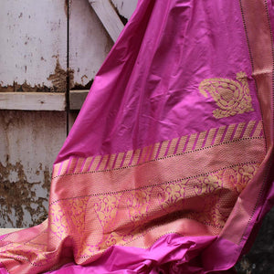 Speciality - A magnificent koniya aanchal or paisleys at its corners. The corners are particularly difficult to weave as they are a break from the running pattern, but koniyas look magnificent when worn.