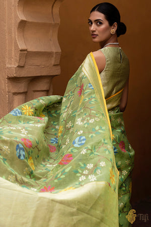 Speciality - With zari threads made of real silver, this is a Banarasi gem. Woven in the exquisite Jamdani technique with Meenakari floral motifs, this is a rare saree, made especially for the discerning.