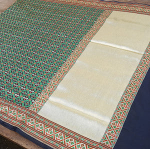 Speciality - Banarasi weavers have sought inspiration in India's rich and varied regions and made this Gujarati classic their own. A beautiful handwoven piece of heritage from Banaras.