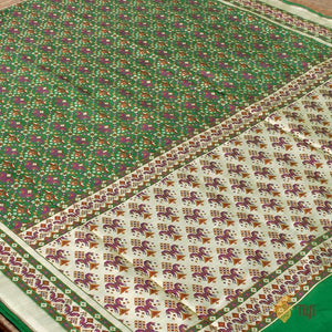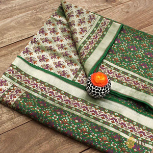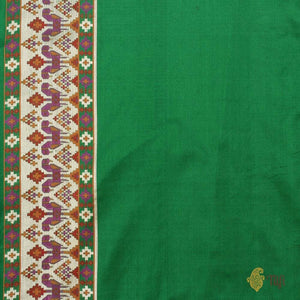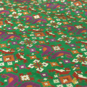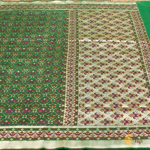 Technique - A Gujarati Patola design created using classic handwoven Banarasi Meenakari art passed down through generations. Meenakari involves the painstaking addition of supplementary coloured resham threads during the hand-weaving process.
