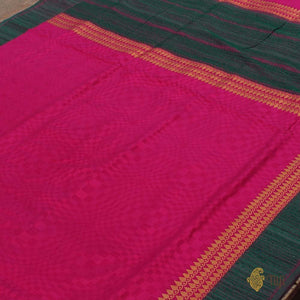 Technique - The finest Tanchoi weaving technique, which employs one or more warps and multiple coloured wefts to produce a self-design which covers the body of the saree.