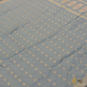 Reminiscent of a bygone era, this handwoven dupatta is fit for queens. True to form, vintage Banarasi with regal peacock motifs and a Baluchari inspired aanchal. Beautiful and timeless!