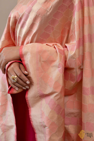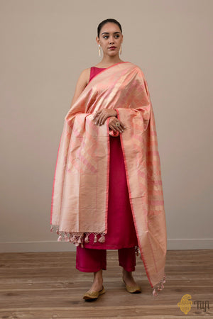 An effortlessly elegant and charming aadha (diagonal) dupatta. A classic handloom masterpiece, with a beautiful pattern, delicately woven in gold zari and resham meenakari. Unconventional and irreplaceable!