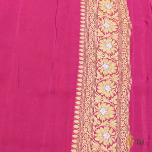 Nothing speaks to the splendour and opulence of Banarasi handloom better than this luxurious saree! A ravishing aadha jaal, exquisitely crafted in gold and silver zari on a beautiful, rich palette.