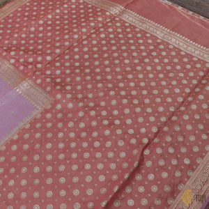 This saree is twice as nice as any other! A half and half saree with all that is best in lilac and pink. A sublime, delicately lustrous katan silk tissue body, speckled with kadhua zari bootis for a wholly irresistible drape.