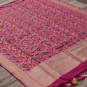 Technique - Fine Meenakari technique which involves the painstaking addition of supplementary coloured resham threads during the hand-weaving process.