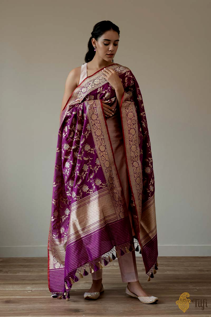Speciality - Luxury is in the details. This is a painstakingly handwoven dupatta with a rich and intricate weave in gold and silver zari. Breathtaking Banarasi opulence!