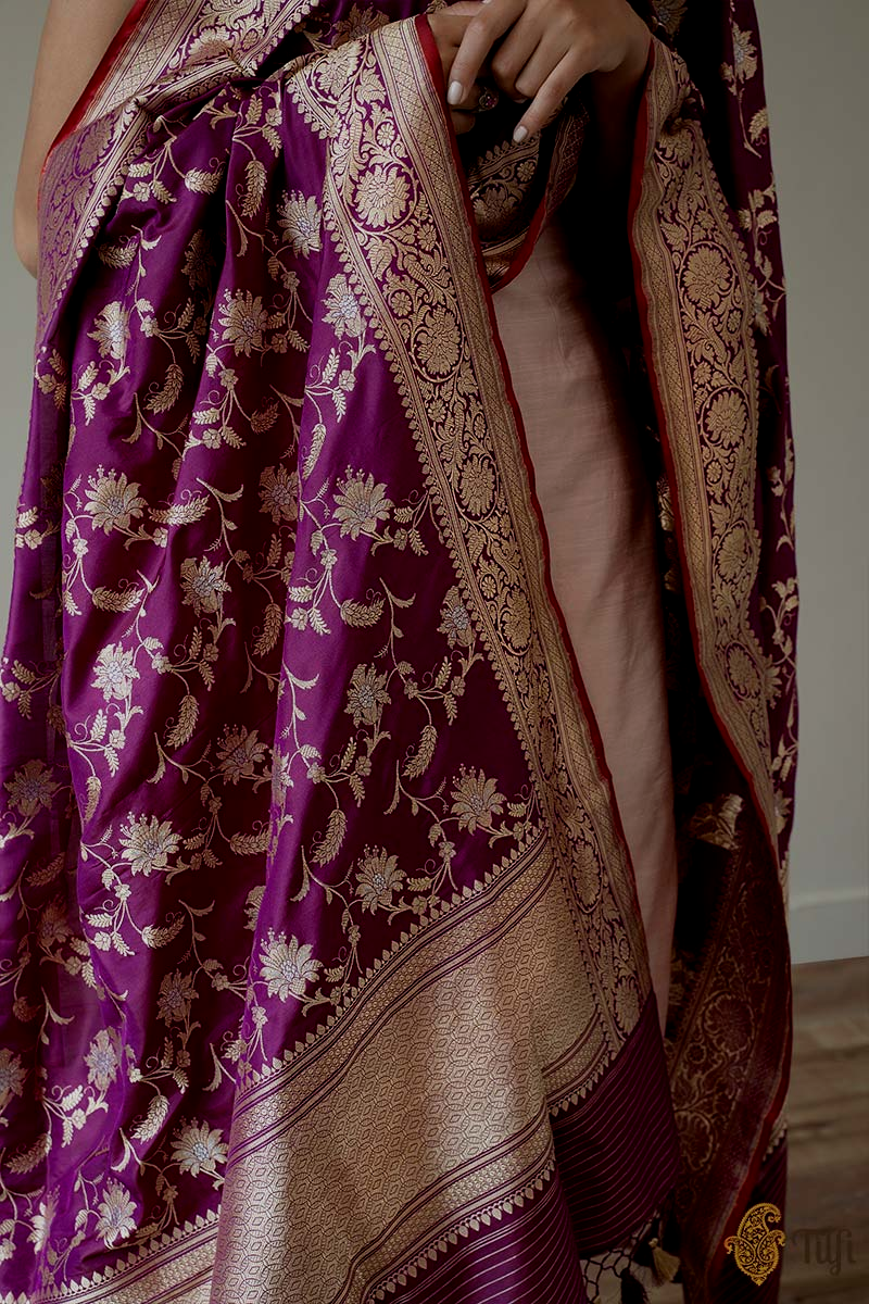 Technique - An enduring Kadwa weave. The elaborate and laborious Kadwa (Kadhua) technique involves hand-weaving each motif separately. It takes longer on the handloom, but makes a more robust pattern, which stands out on the fabric.