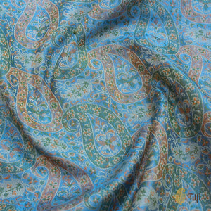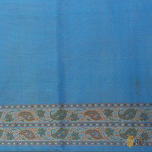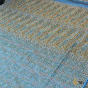 Maya Blue Pure Soft Satin Silk Tanchoi Jamawar Banarasi Handloom Saree