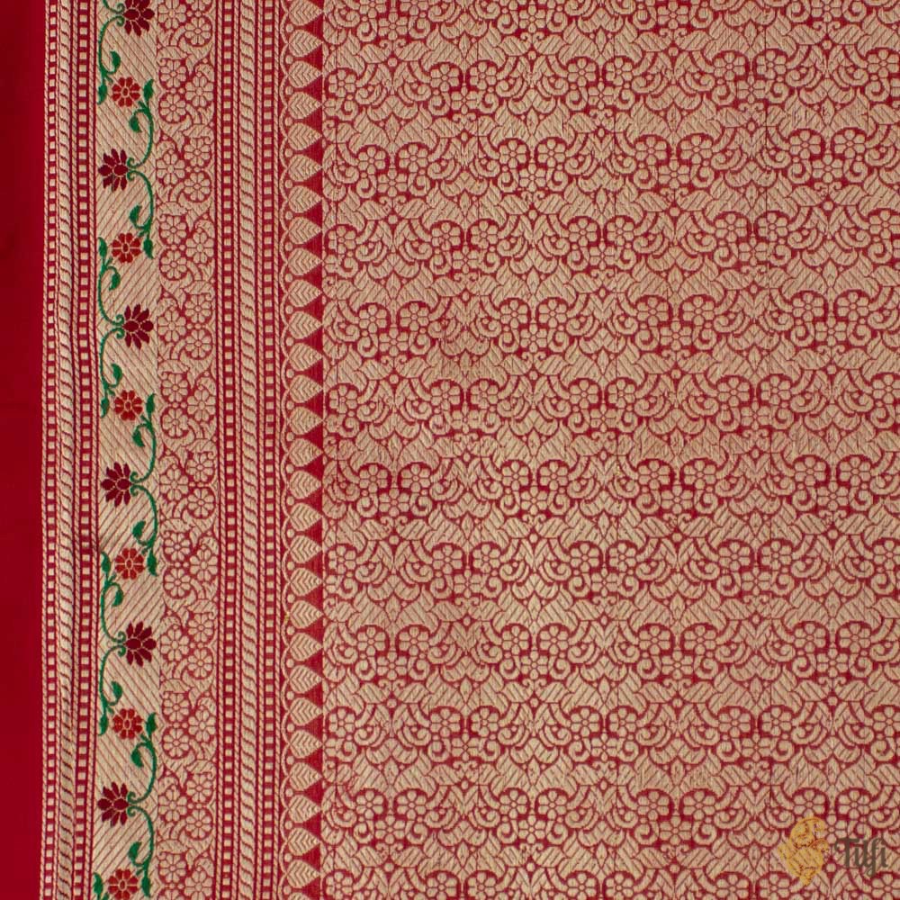 Technique - An enduring Kadwa weave and fine Meenakari technique. The elaborate and laborious Kadwa (Kadhua) technique involves hand-weaving each motif separately. It takes longer on the handloom, but makes a more robust pattern, which stands out on the fabric. Meenakari involves the painstaking addition of supplementary coloured resham threads during the hand-weaving process