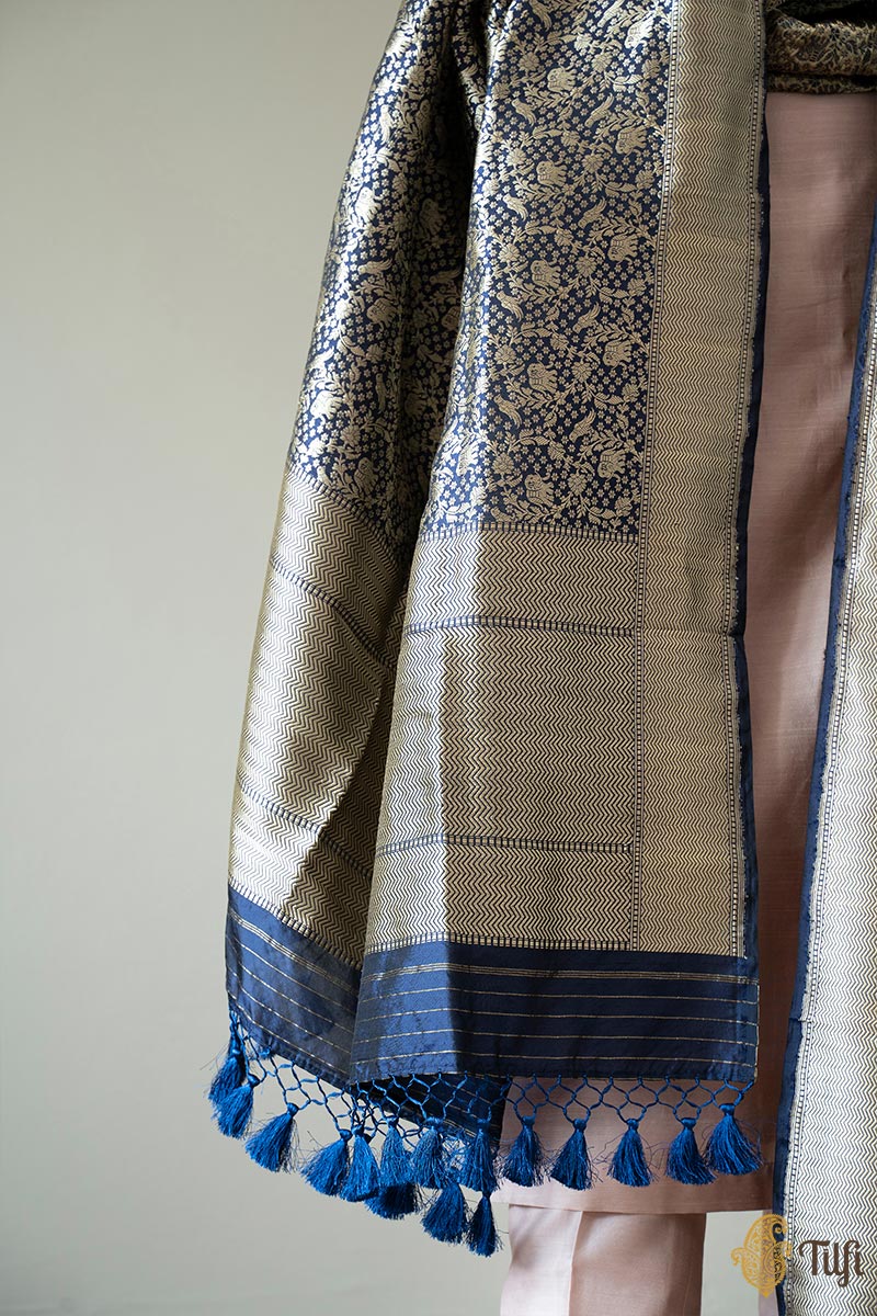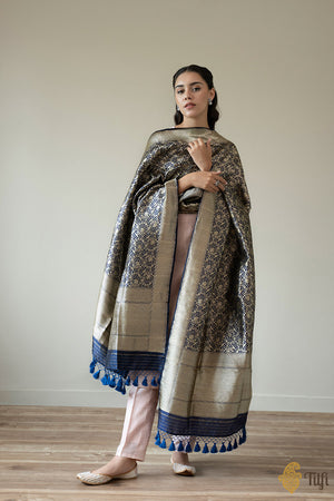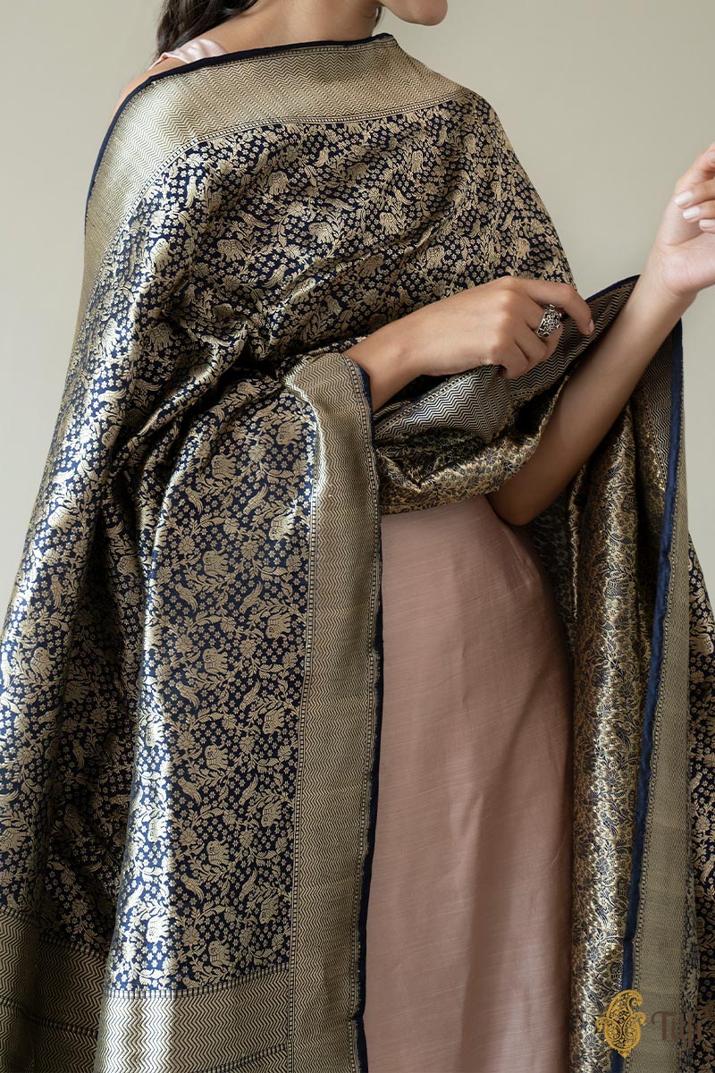 Navy Blue Pure Katan Silk Banarasi Handloom Dupatta