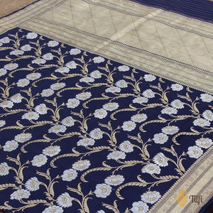 Manjari - A collection of blooms of exceptional artistry. True handwoven love is in the details of this exquisite Banarasi drape. Luxuriously handcrafted and incredibly detailed in gold and silver zari.