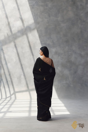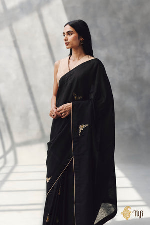 Pre-Order: 'Nilima' Black Pure Cotton Linen Banarasi Handloom Saree