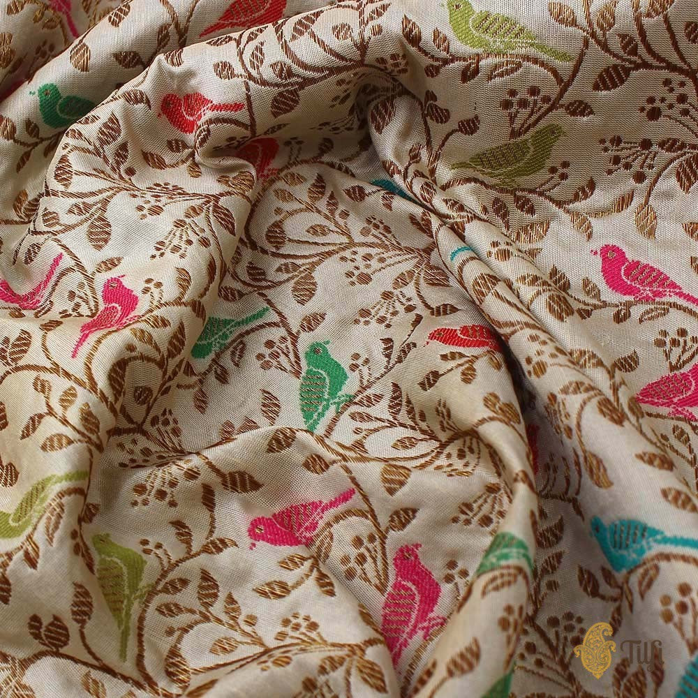 An entirely delightful and adorable drape! With its little chirps and twitters coming through a web of antique zari vines - this is a