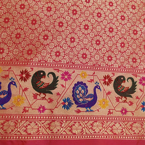 Speciality - Banarasi weavers have sought inspiration in India's rich and varied regions and made this beautiful classic their own. This saree has an intricate Paithani style border and Aanchal.