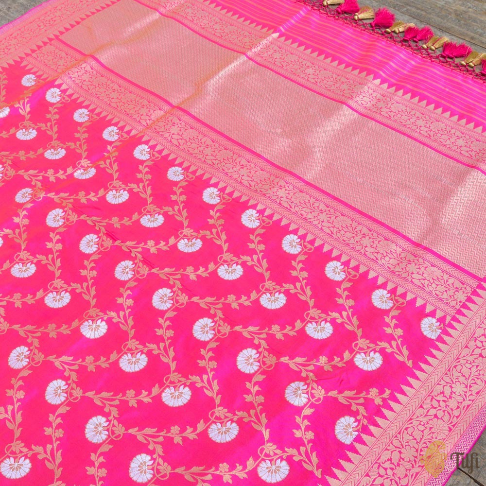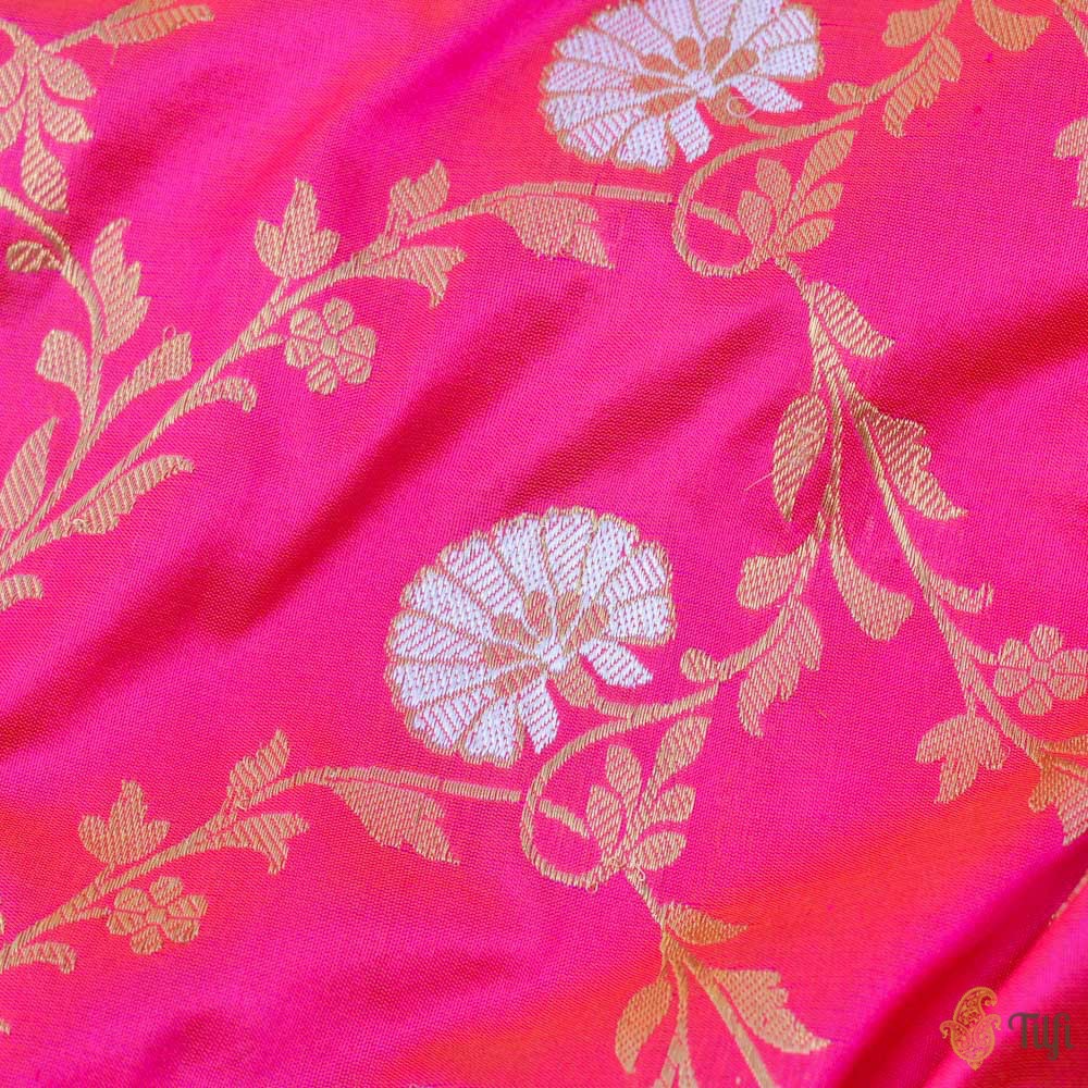 Speciality - Luxury is in the details of this handwoven masterpiece with a rich and intricate kadhua floral jaal in roopa sona zari. Breathtaking Banarasi opulence!